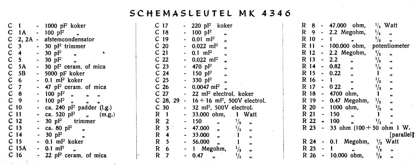De middenfrequentie bedraagt 471 kHz en hiervoor worden de trafo-types 31 en 32 gebruikt.