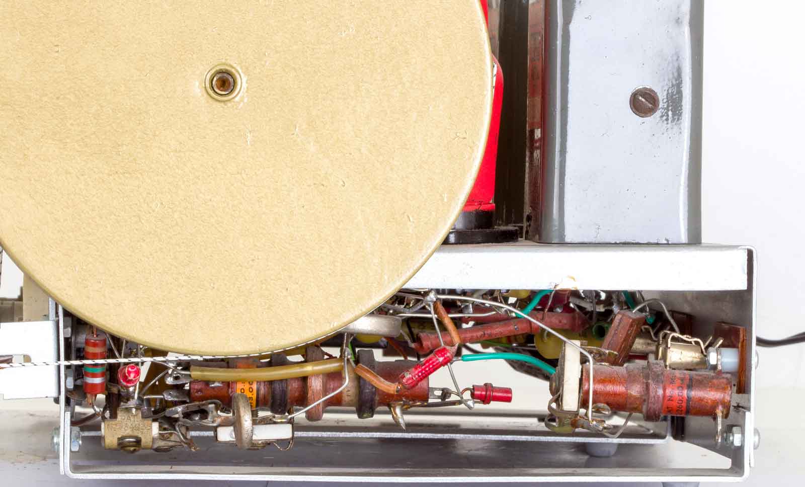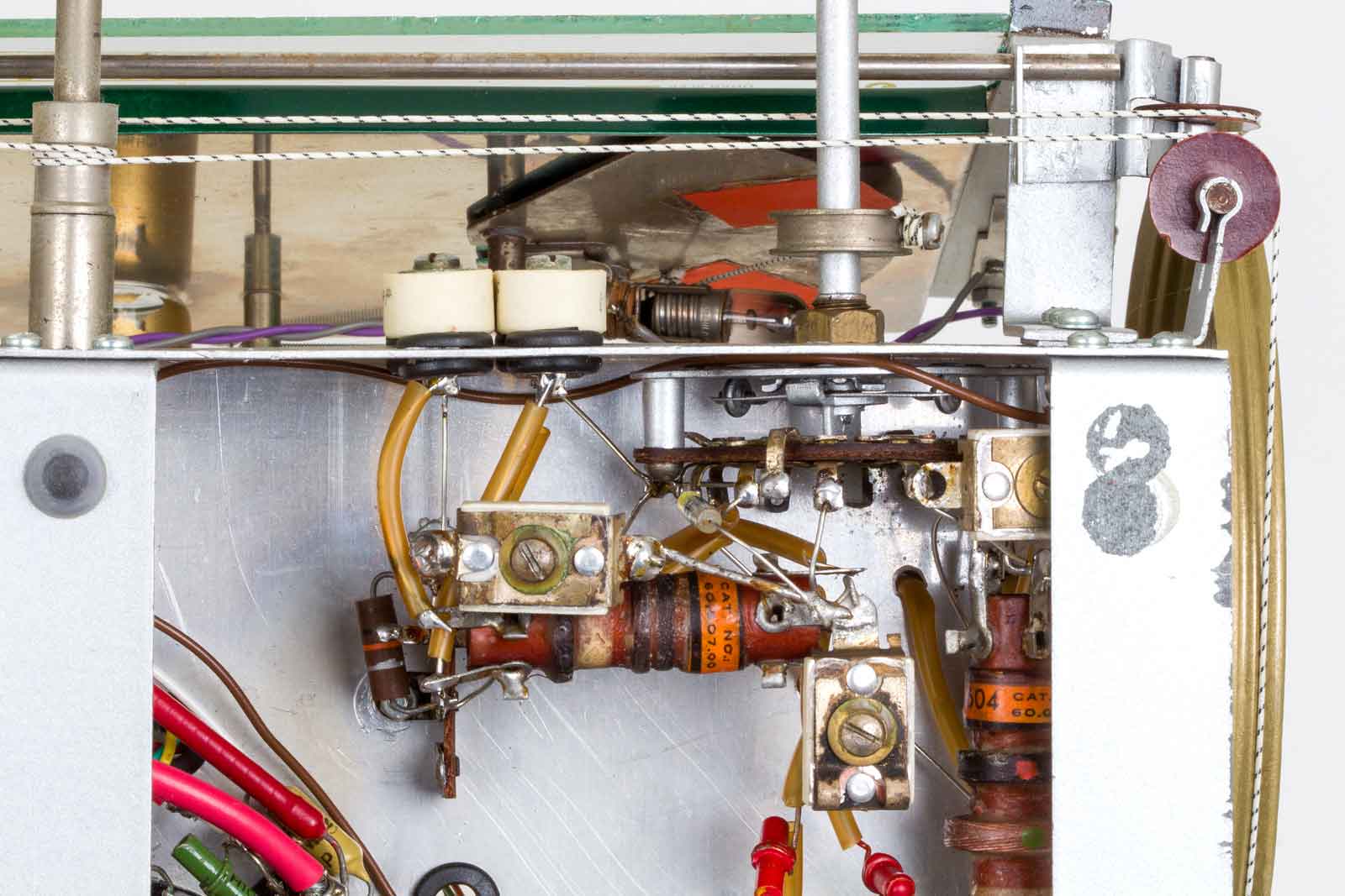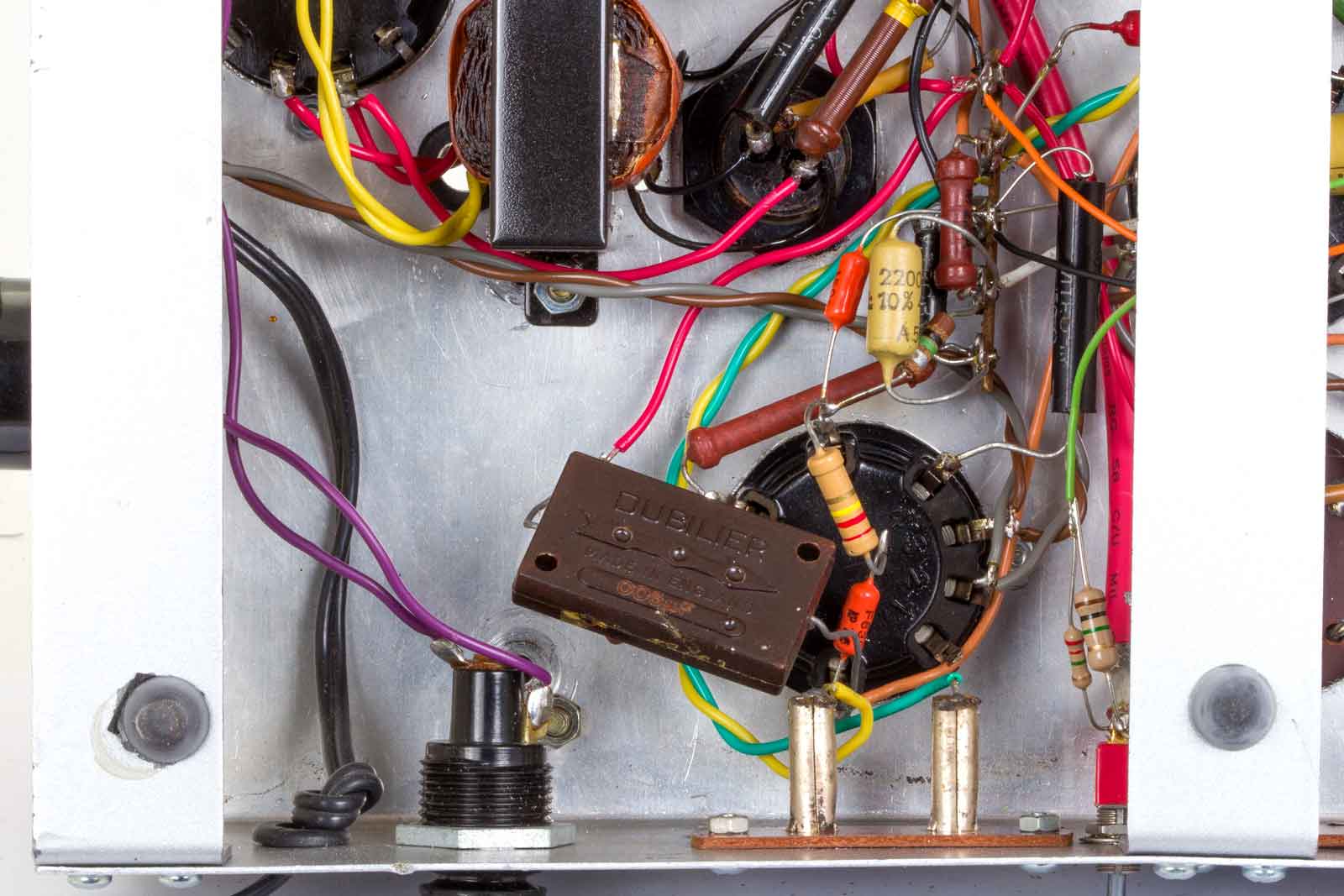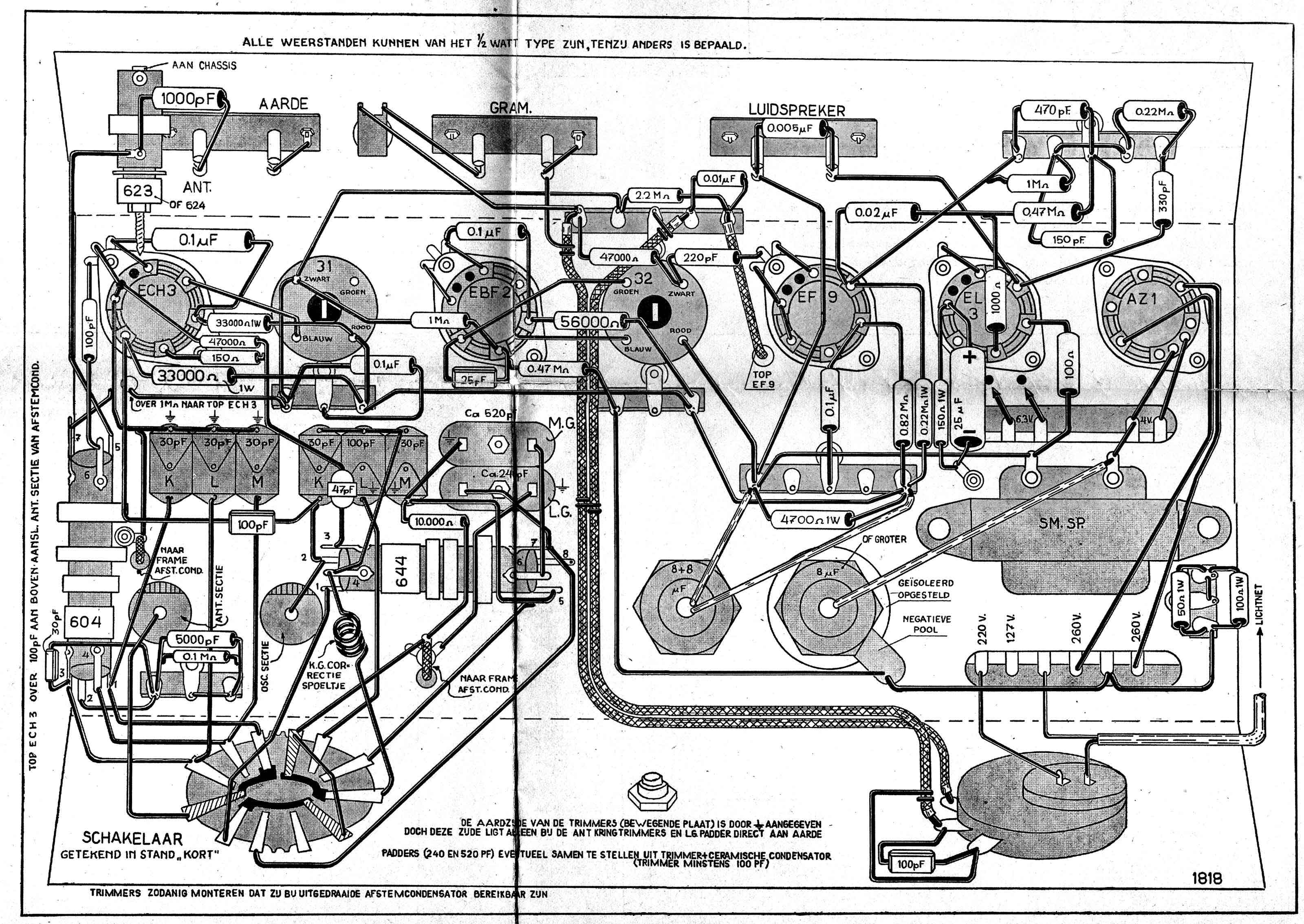 Gelukkig zijn alle slechte papiercondensatoren al vervangen door de uitstekende "mosterd"-types van Philips. De bruinige weerstanden komen ook uit Eindhoven.