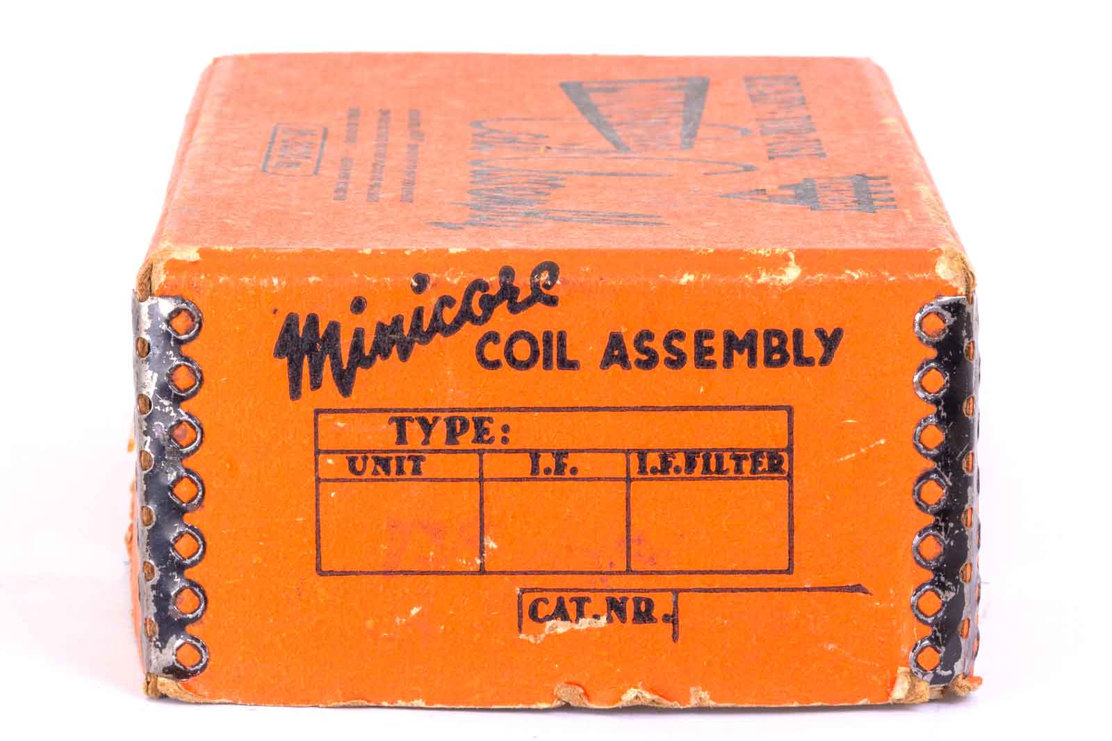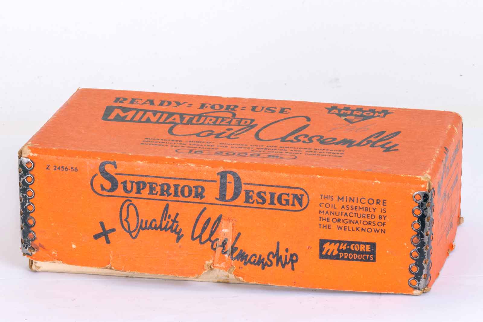 Het is moeilijk leesbaar, maar "736" is er nog telezen, het nummer van het bekende spoelblok wat verder op deze pagina wordt beschreven. Ook twee MF-filters behoren tot de inhoud, deze zijn van het type 51 en 52 ( Zie Middenfrequent-trafo's)