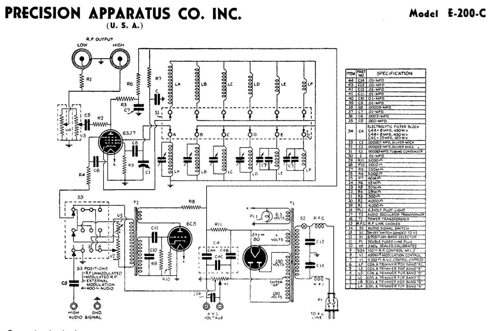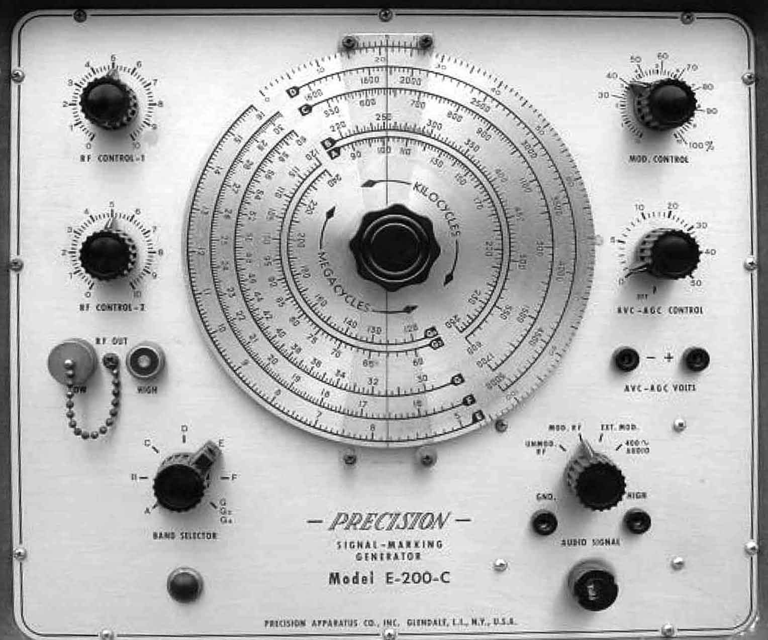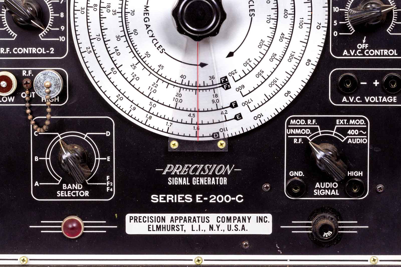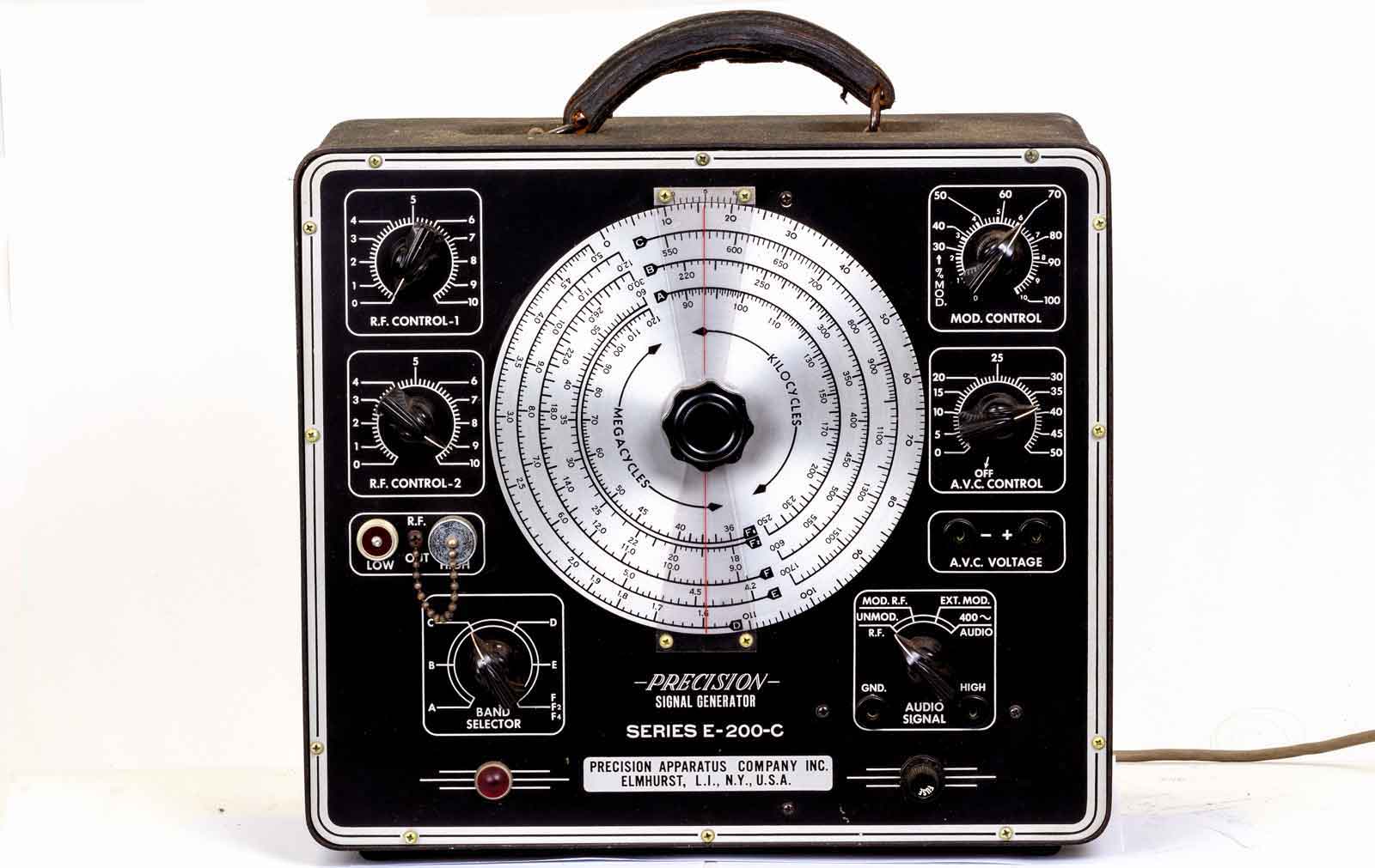 Een HF-meetzender van Amerikaanse afkomst. Het apparaat werd gefabriceerd door Precision Apparatus Co. (Pacotronics); Brooklyn - Elmhurst - Glendale, NY / Chicago, IL