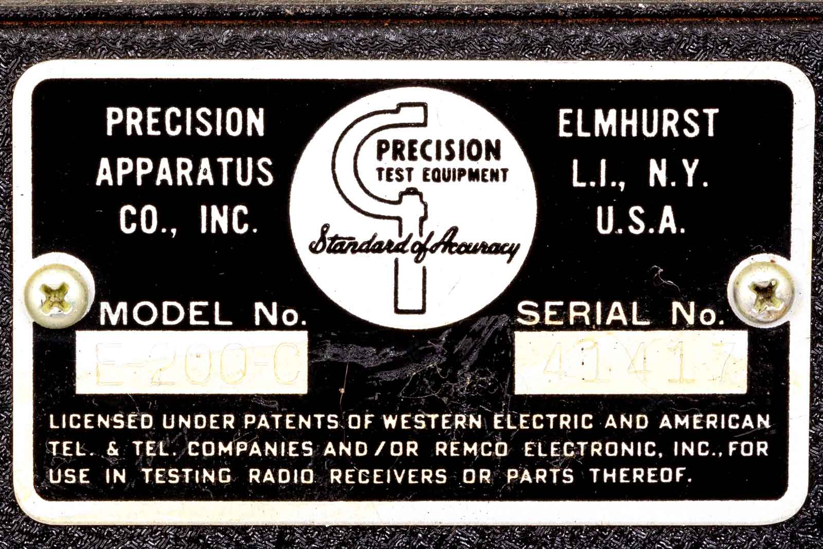 In november 1951 werd Precision Apparatus verboden om valse, misleidende en bedrieglijke beweringen te doen over hun instrumenten uit de series 910, 912, 915, 620 en 922, ze waren daar klaarblijkelijk wat te enthousiast met hun reclame voor buizentesters.