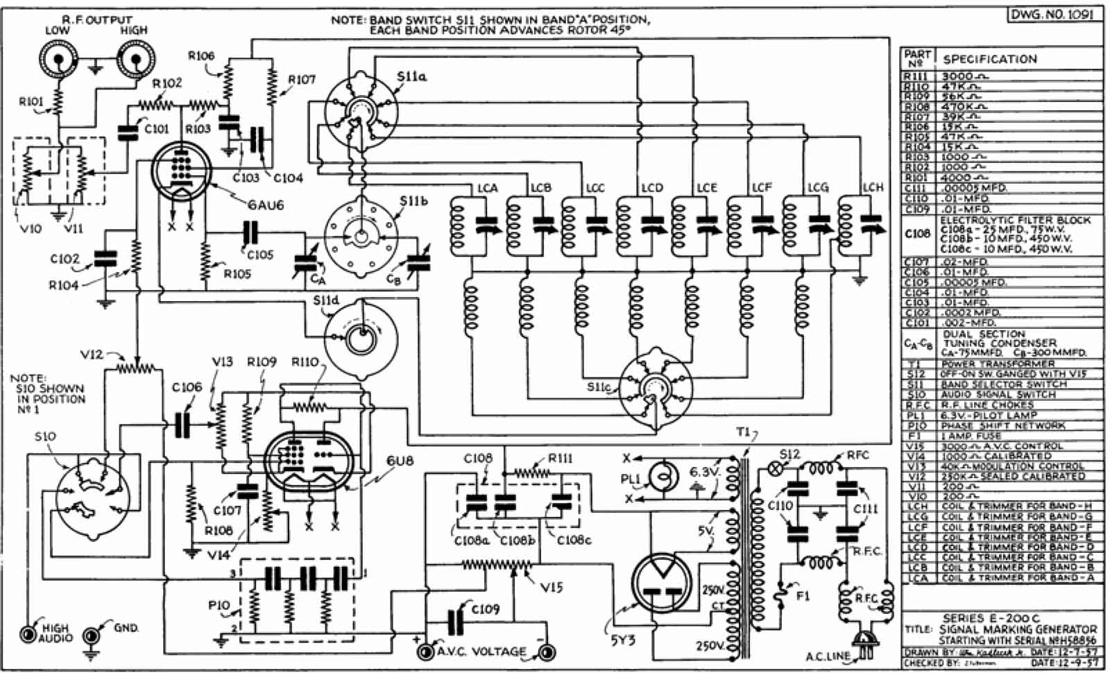 Voor de liefhebbers, het schema van de E-200-D met halfgeleiders.