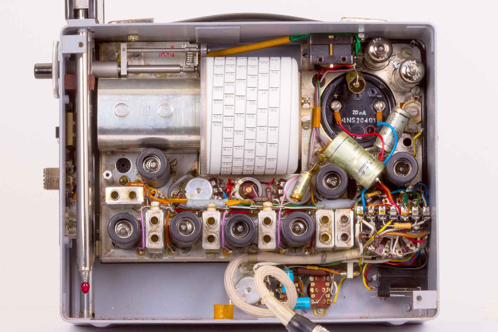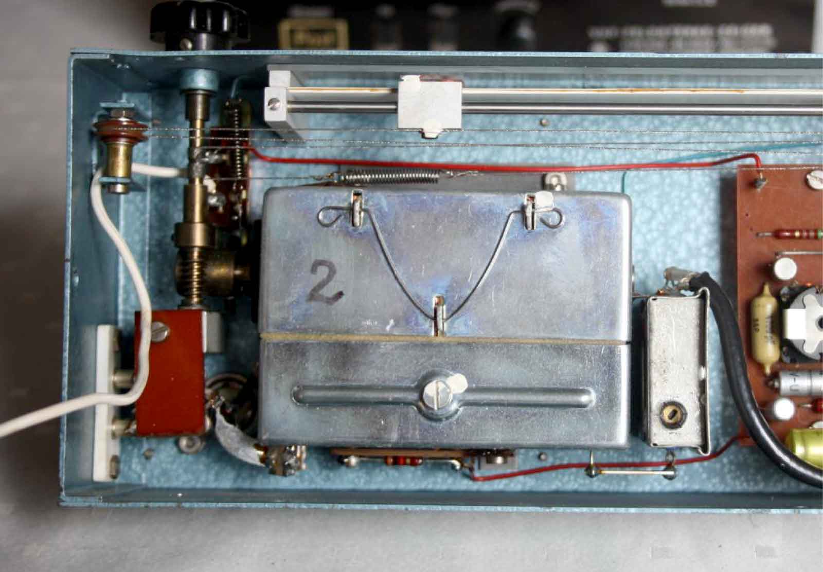 Een deel van het binnenwerk. In de metalen doos bevindt zich de converter, waarschijnlijk met halfgeleiders uitgerust.