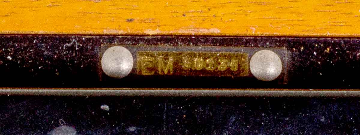 Het plaatje met serienummer dat net boven de draaispoelmeter is bevestigd.