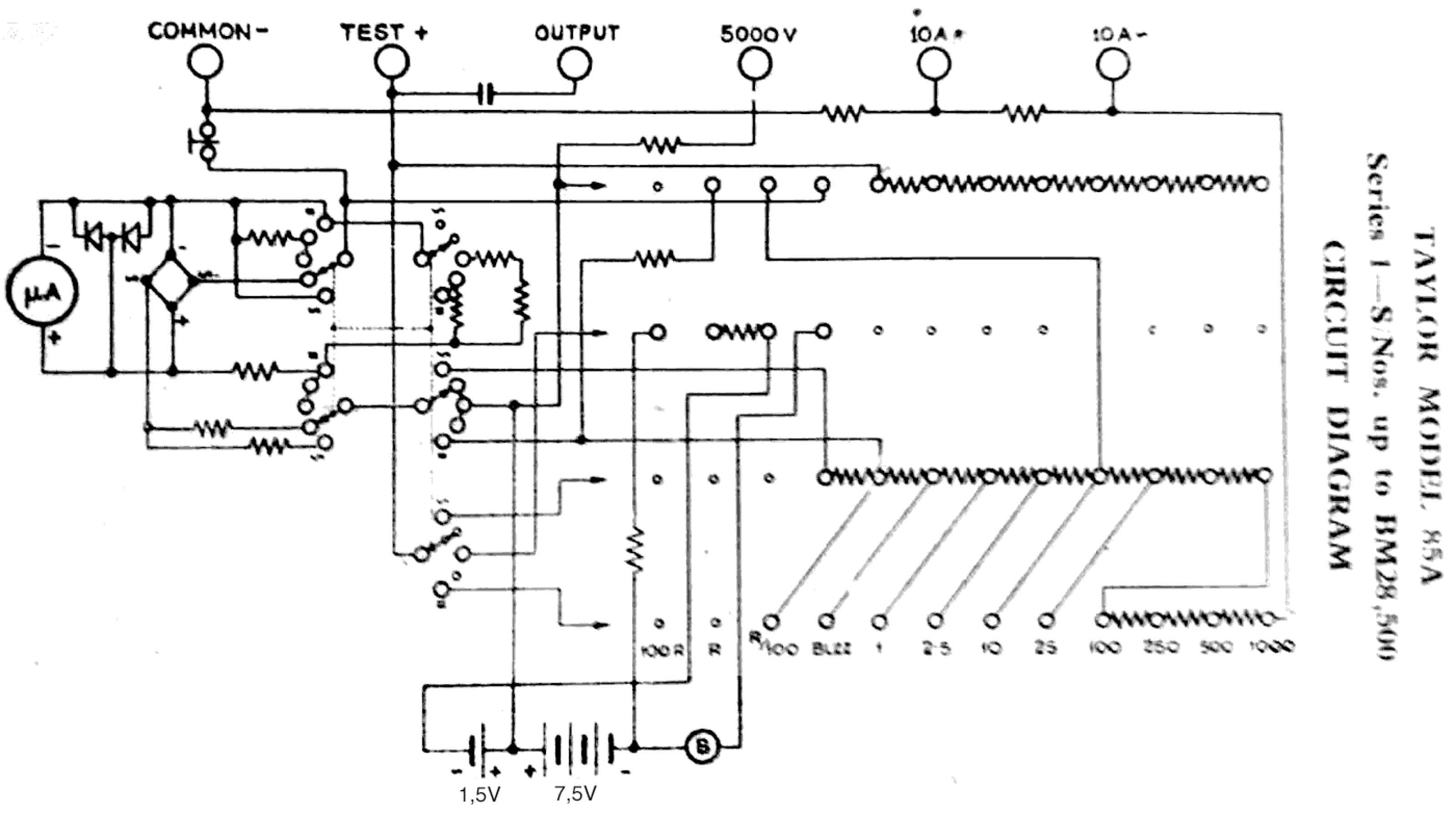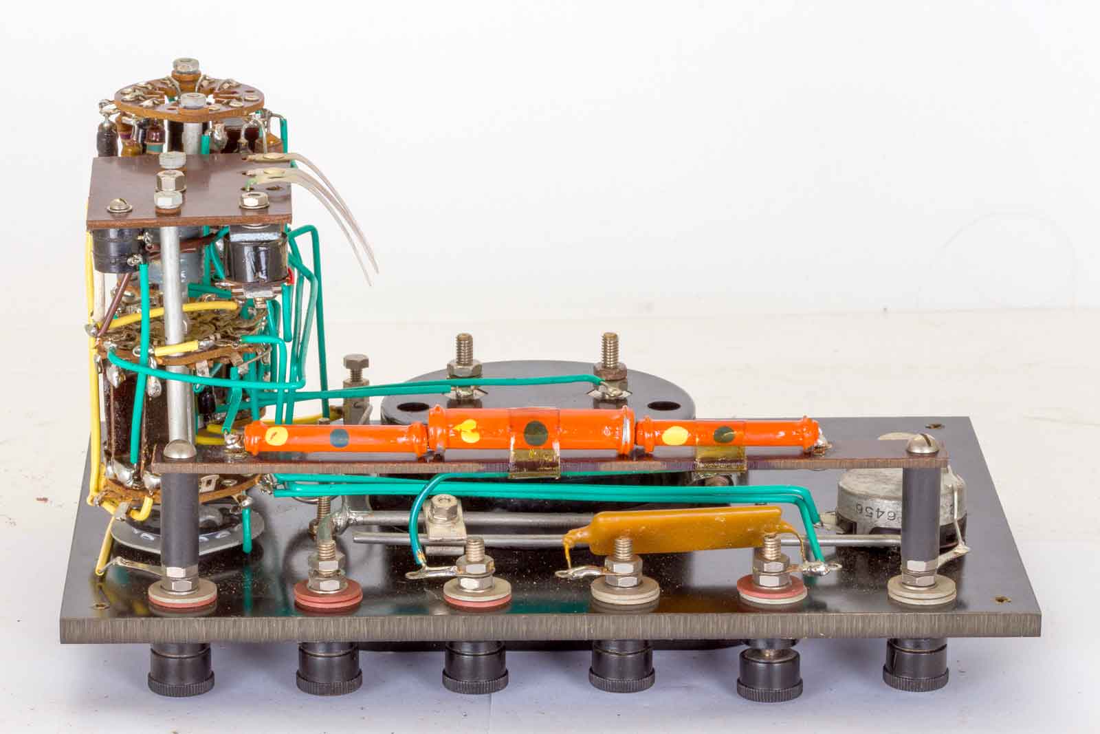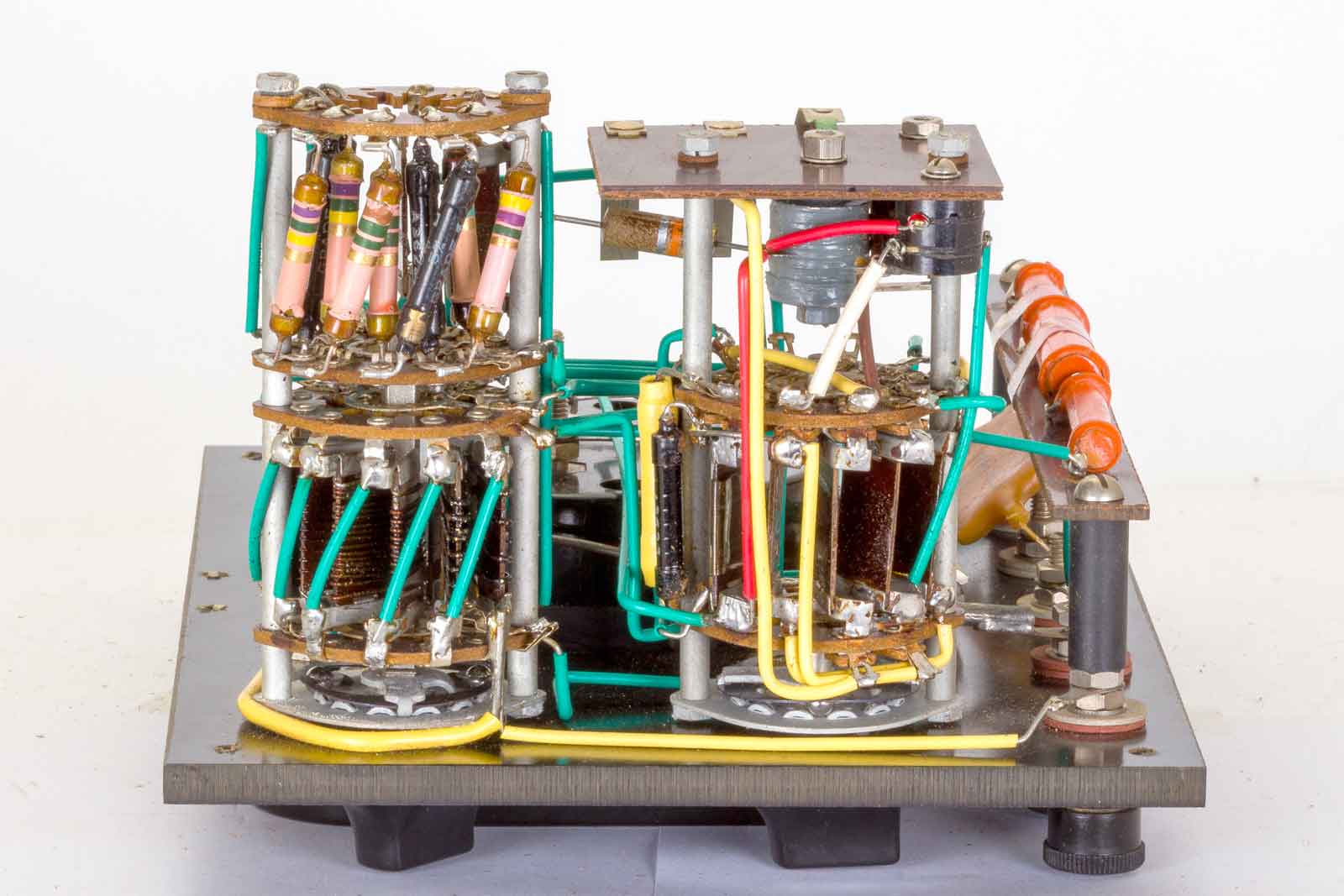 De bereikschakelaar en de keuzeschakelaar . Er schijnt ook nog een "buzzer" in te zitten. Deze wordt gebruikt om een verbinding akoestisch te signaleren. Een "Doorgangs-piepertje".