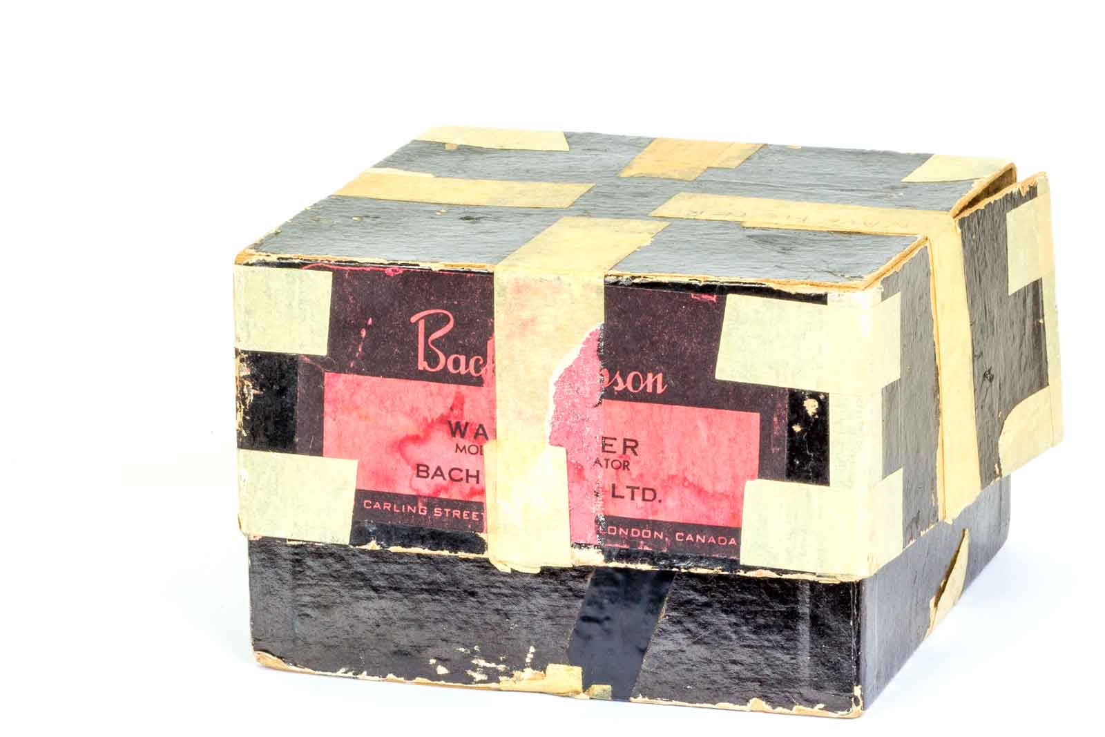 Het type-plaatje, het serienummer is nauwelijks te lezen, 3172. Deze is gemaakt in London, Canada. In dat land werd de meter als Model-77 verkocht. In de VS was het Model-380 .