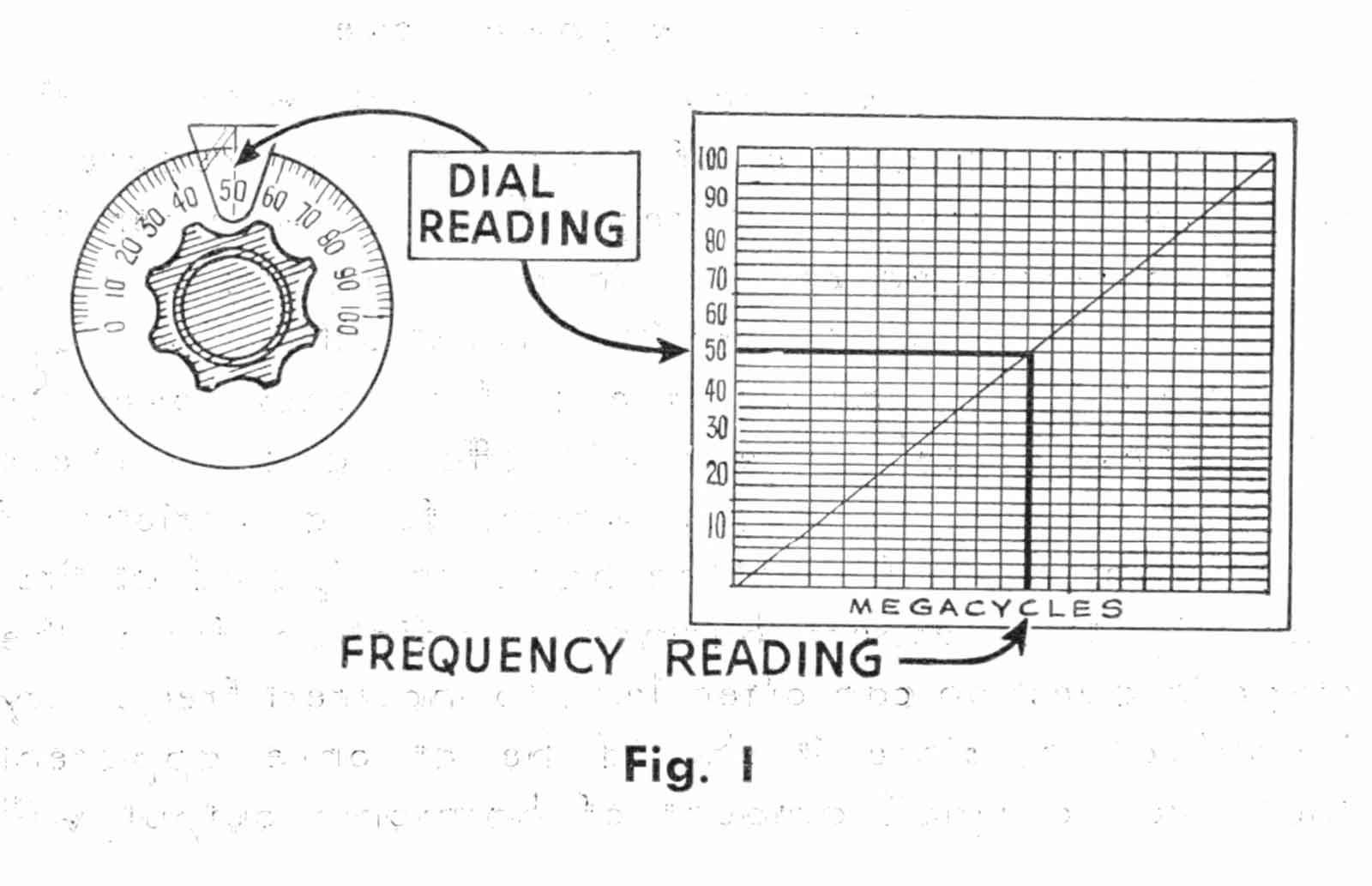 Het bedieningspaneel. De grote draaiknop met een schaal van 0 tot 100 is voor de afstemming. Links een schakelaar "Modulation" om de modulatie-meting in te schakelen. Rechts een schakelaar met het opschrift "Frequency", in de ene stand wordt de afstem-C (75 pF) over zijn volle bereik gebruikt en in de andere stand wordt een trim-condensator van 3 - 30 pF in serie geschakeld voor een zogenaamde bandspreiding. De twee onderste bussen zijn bedoeld voor een hoofdtelefoon zodat je ook nog mee kunt luisteren. De rechtse van de beide is aan het huis verbonden en kan gebruikt worden om het toestel te aarden.