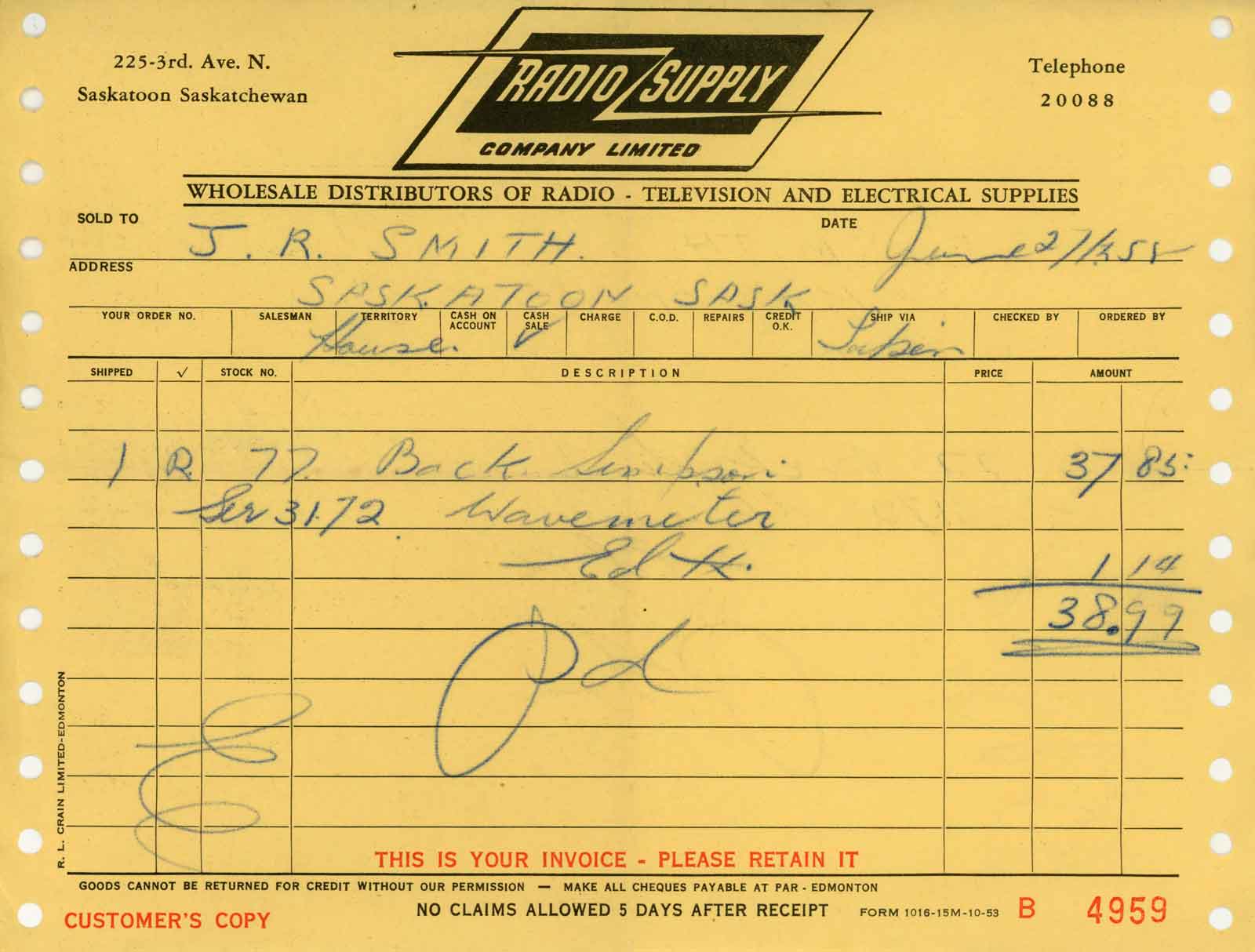 De originele rekening, het apparaat heeft al een hele wereldreis gemaakt. Gekocht in 1955 !!