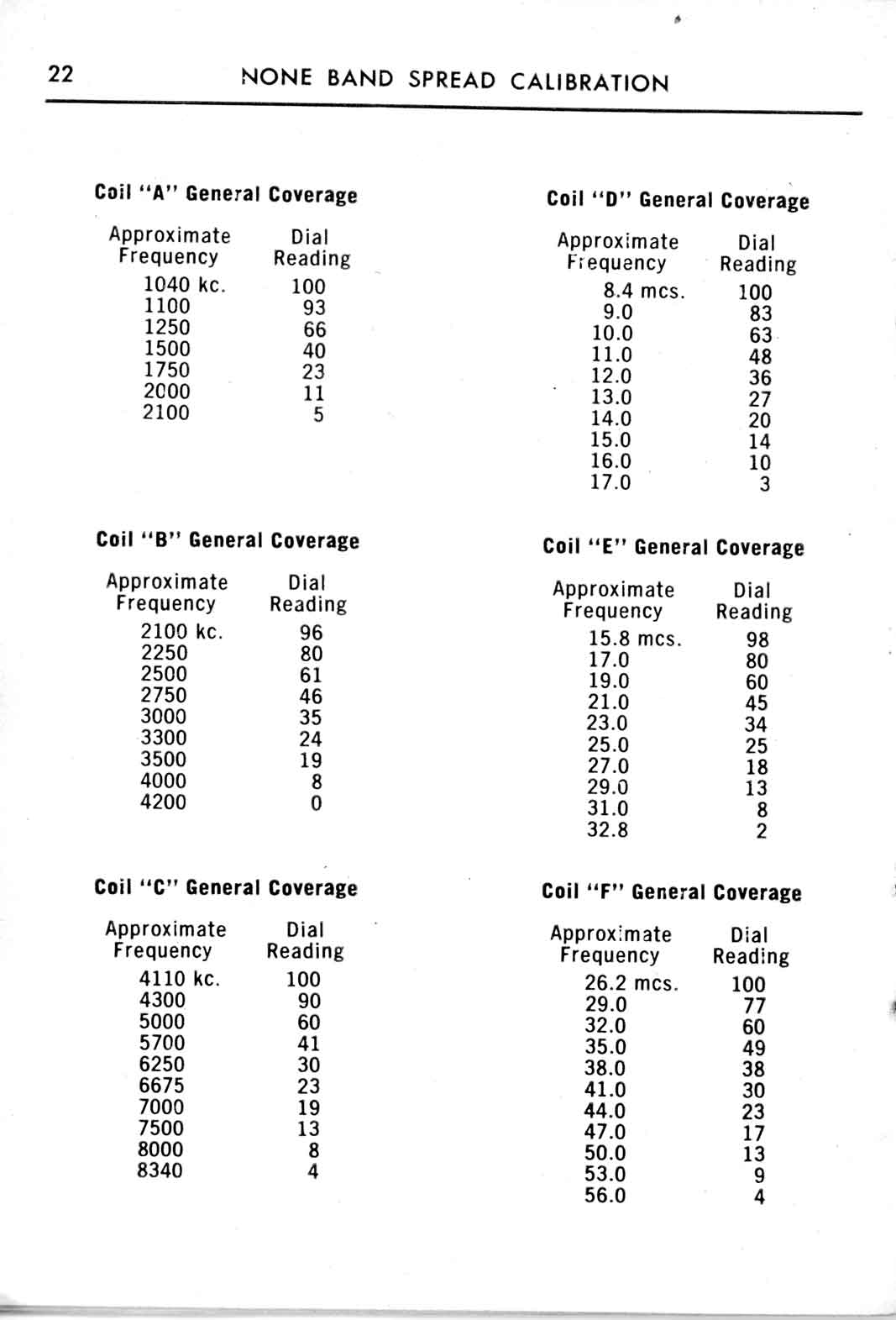 Wanneer je de calibratiekaarten niet gebruikt en frequenties buiten de amateurbanden wilt bepalen gelden de bovenstaande waarden. Hierbij zijn ook de waarden voor de extra spoelen voor de 160 en 6 meterband getoond.