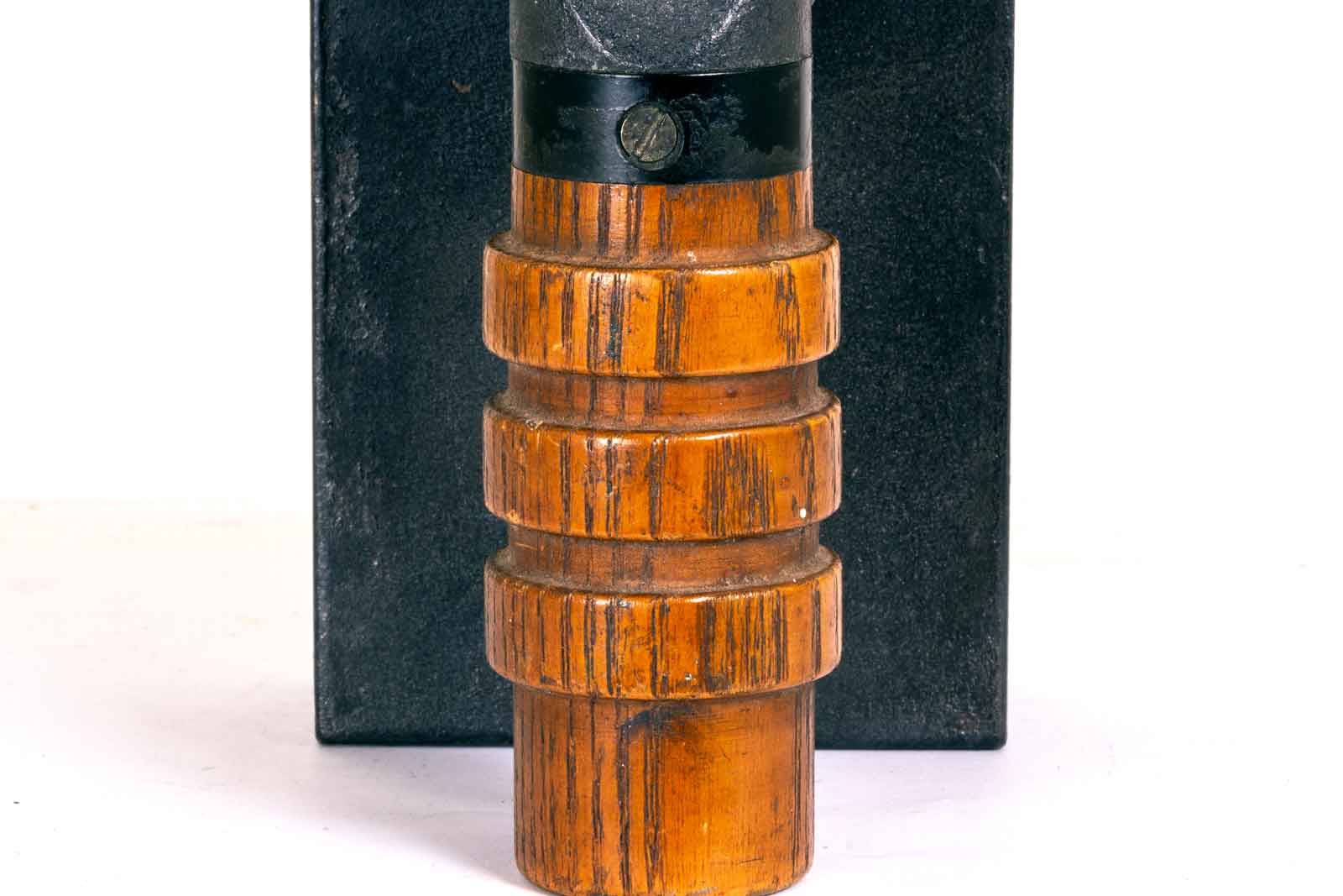 Bij het Airministry of de Army zouden ze een metalen of kunststof handvat hebben gebruikt. Bij de marine dus niet, geheel in traditie met het vele, mooie hout dat bij marineschepen werd toegepast.