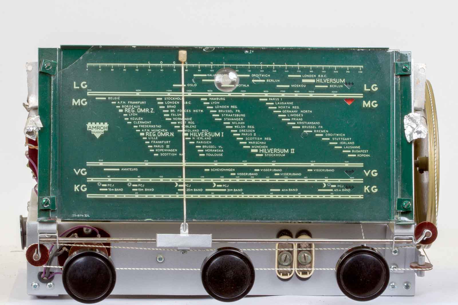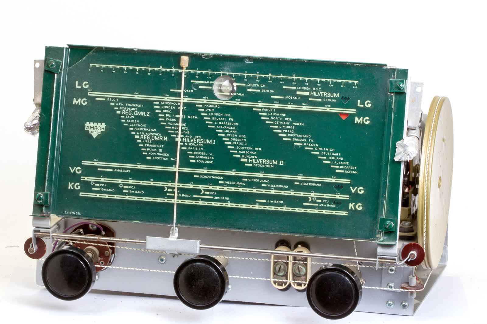 De schaal met daarop HILVERSUM I en II. Verder zijn de regionale omroepen Zuid en Noord duidelijk op de schaal geprint. De stationsbenamingen zijn voornamelijk plaatsnamen en niet de fantasielose benamingen Radio 1 of BBC. Bij de gebruikte namen zag je de steden zo voor je en je waande je bij het beluisteren ervan dat je er ook aanwezig was.
