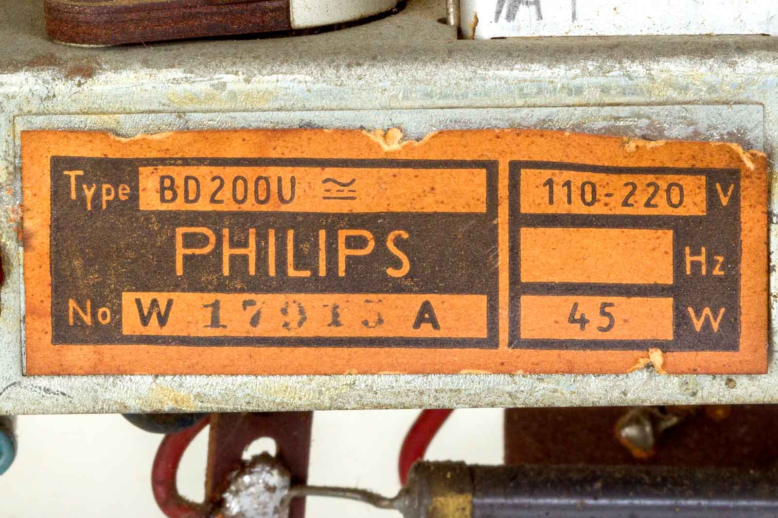 Dan komt dit apparaat er uit. Links boven de uitgangstrafo met daarnaast de elco van het afvlakfilter. Deze is door de vorige eigenaar al vervangen door een niet-Philips type. Rechts de afstemming met een strak gespannen veer.