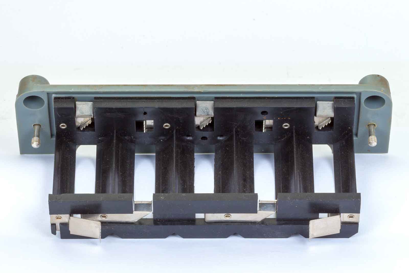 De houder, deze is geschikt voor vijf babycellen. Er schijnt ook een houder te bestaan voor tien kleinere batterijen.