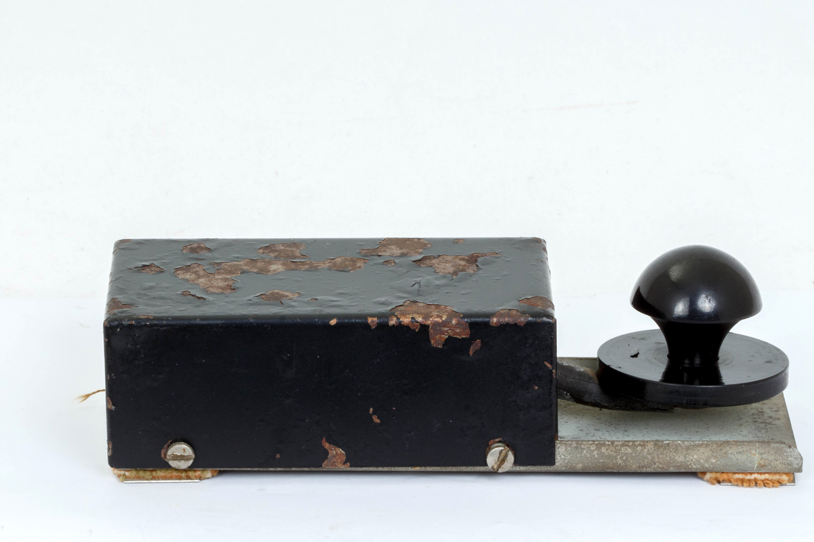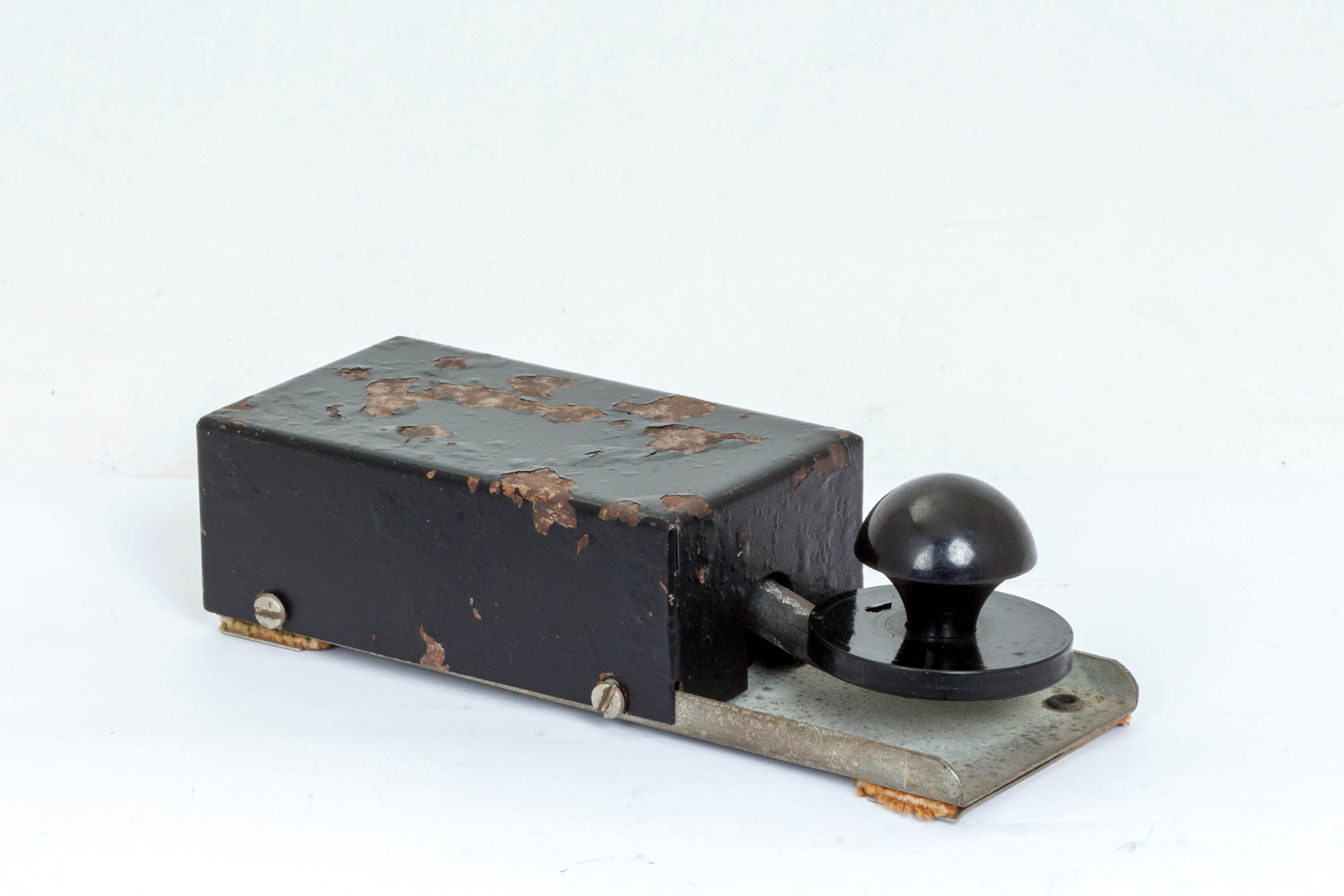 Zijaanzicht van het geheel. De "straps" en de kabel ontbreken. De seinsleutel was dus bedoeld om op je been vast te snoeren en werd veelvuldig in voertuigen gebruikt.