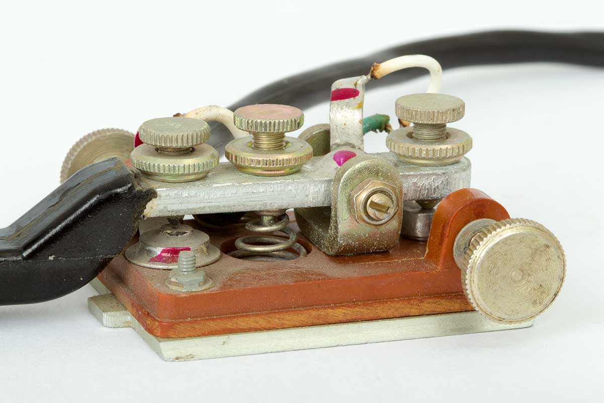 Dit is de R-143 transceiver. Links boven, de aansluiting voor de seinsleutel.