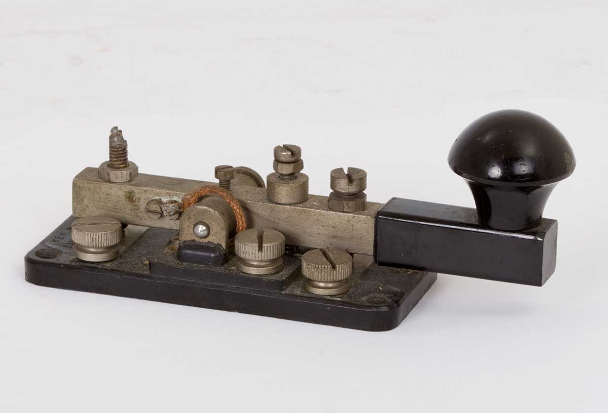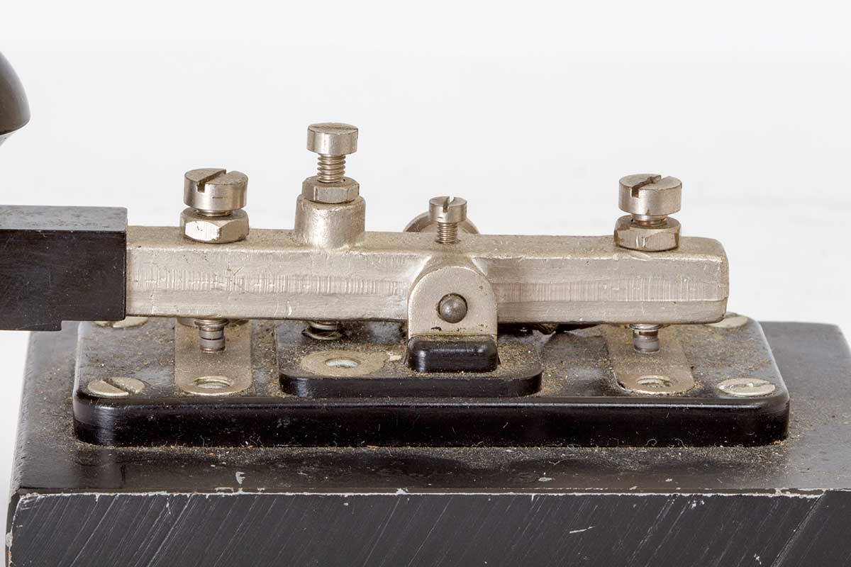 Deze met drie brugjes en een trekveer om de sleutel hoog te houden. De kontakten zijn boven in de bruggen.