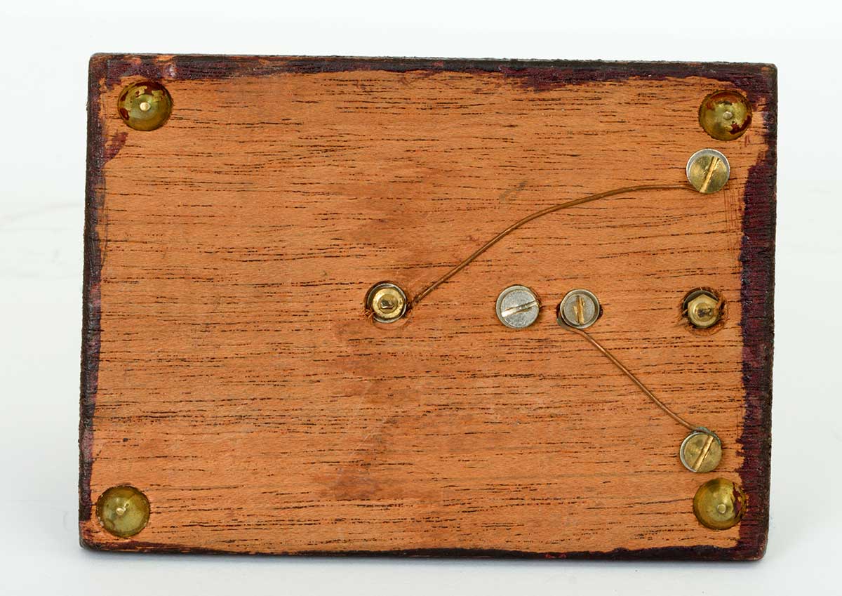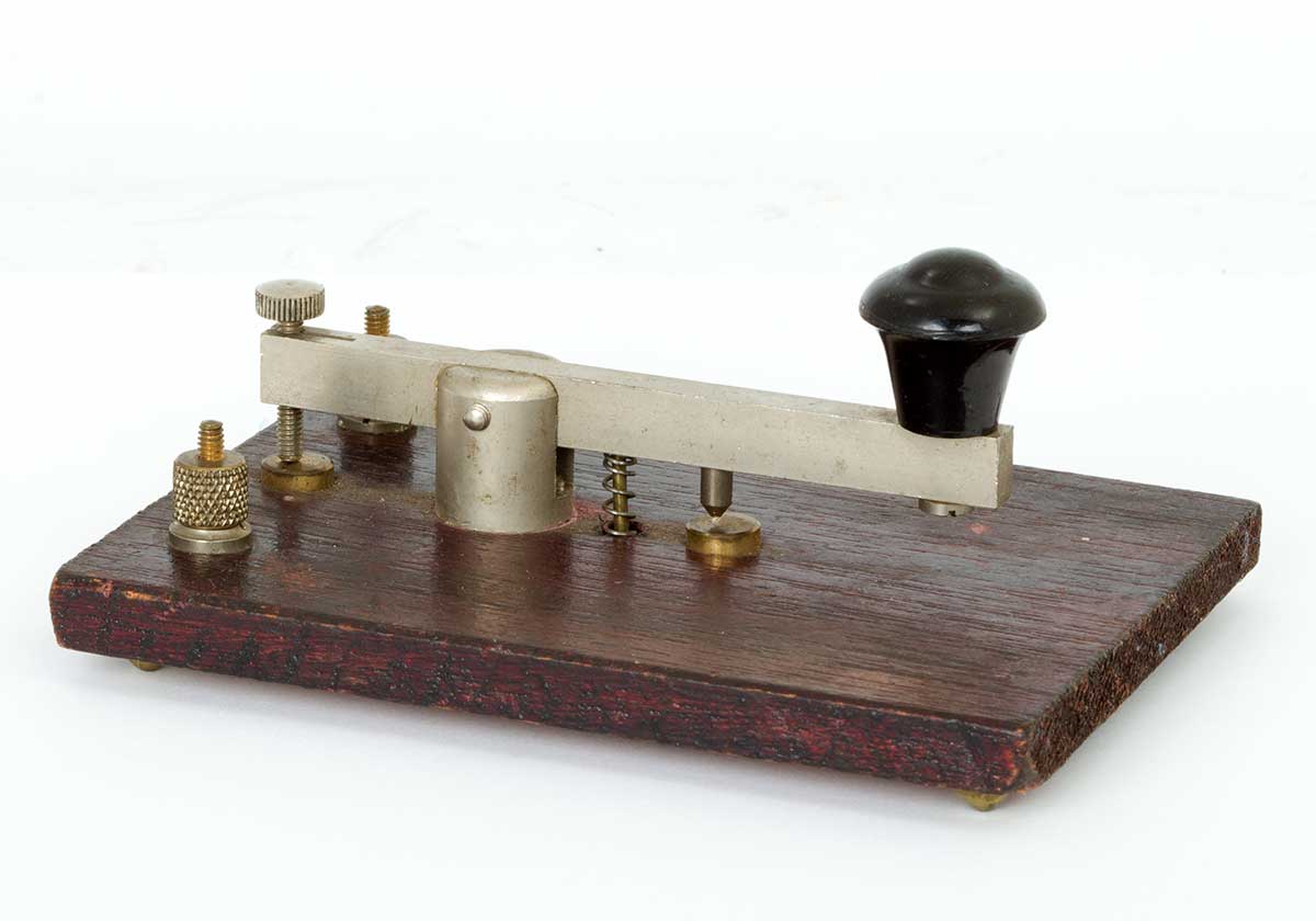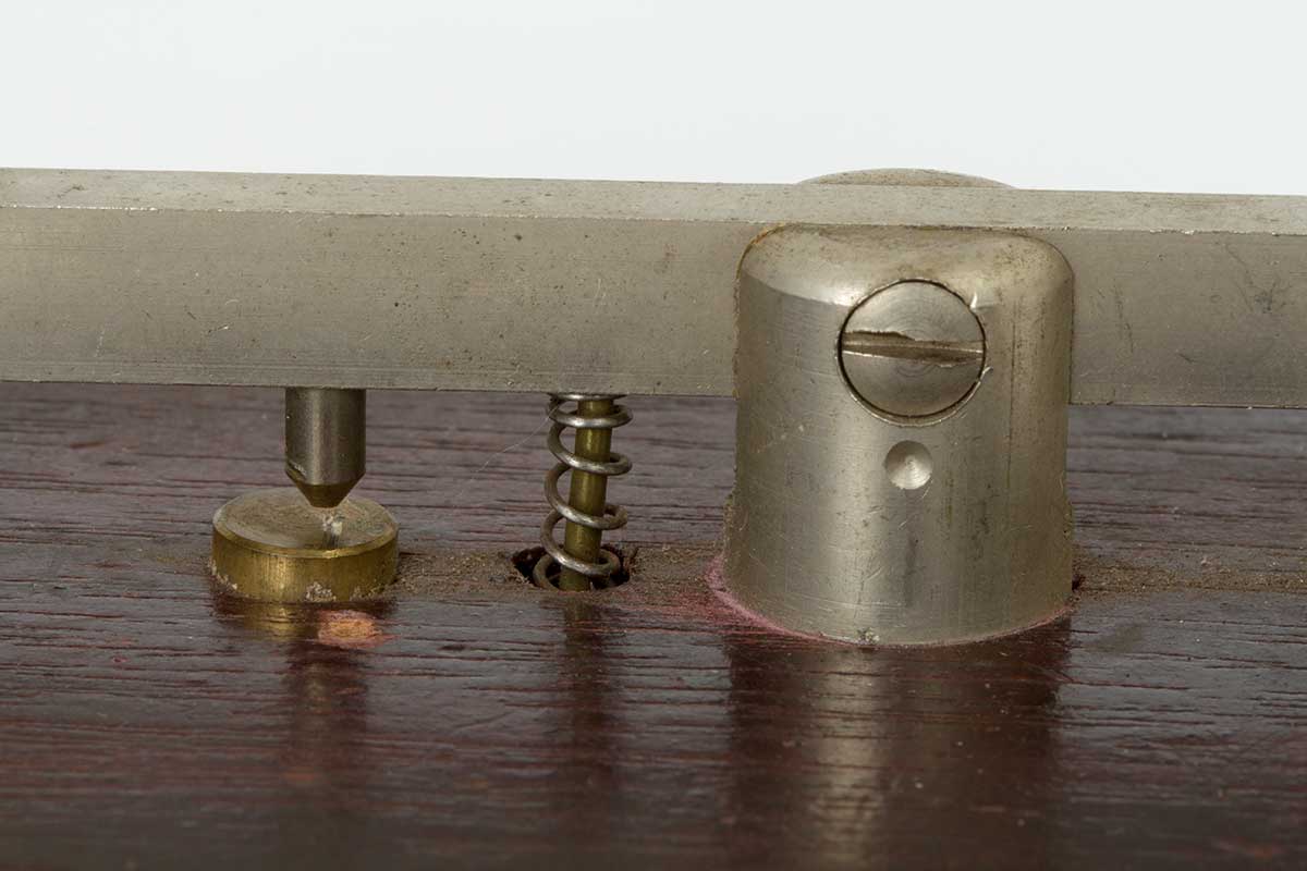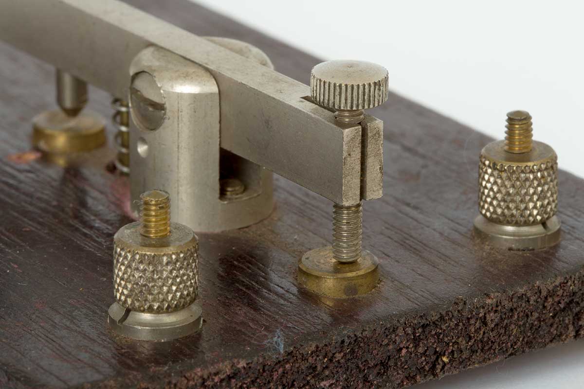 Detail van het maak-contact , de niet instelbare sleuteldruk-veer en het draai-punt. (Geen kogellagers!!)