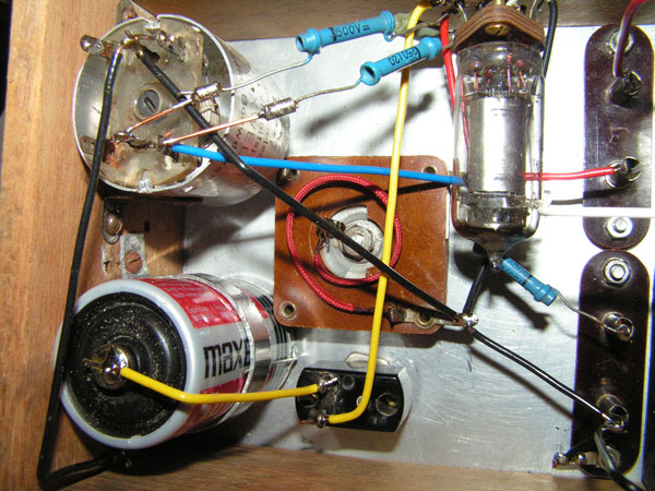 De gloeistroombatterij en de afstemspoel. Blijkbaar heeft de vorige eigenaar met S39 de aansluitingen gesoldeerd.