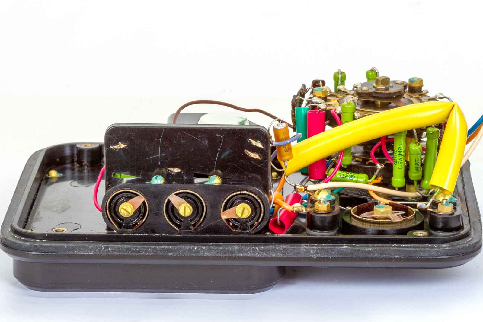 Links de instelpotmeter voor de Ohm-instelling. De onderdelen zien er redelijk degelijk uit.