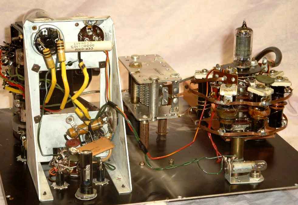 De oscillator van de E-100 met een 6A8 (oktode) met top-aansluiting. ( 1938 !!)