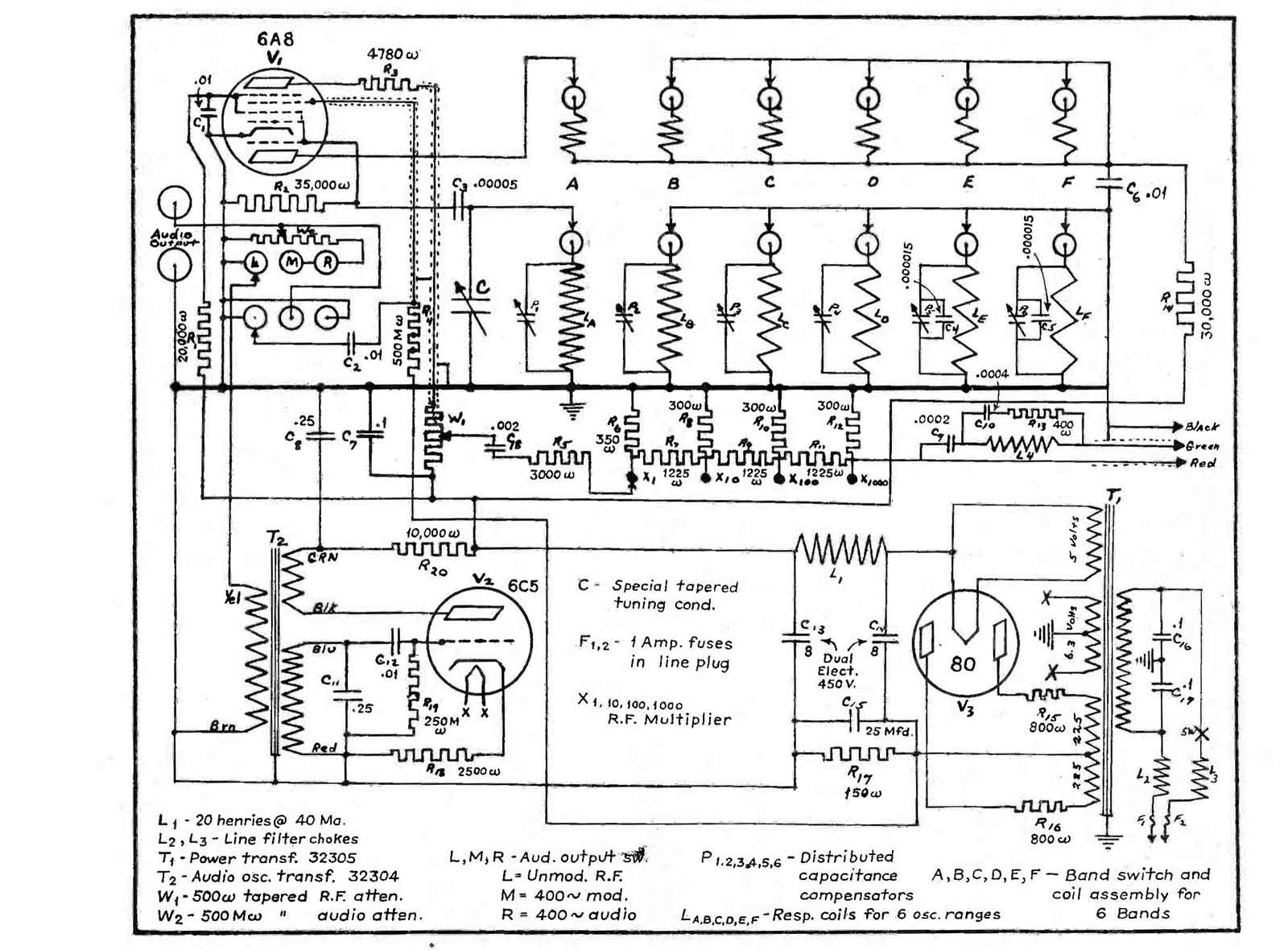 De Eerste generator van de E-100 serie met 6A8, 6C5 en 80.
