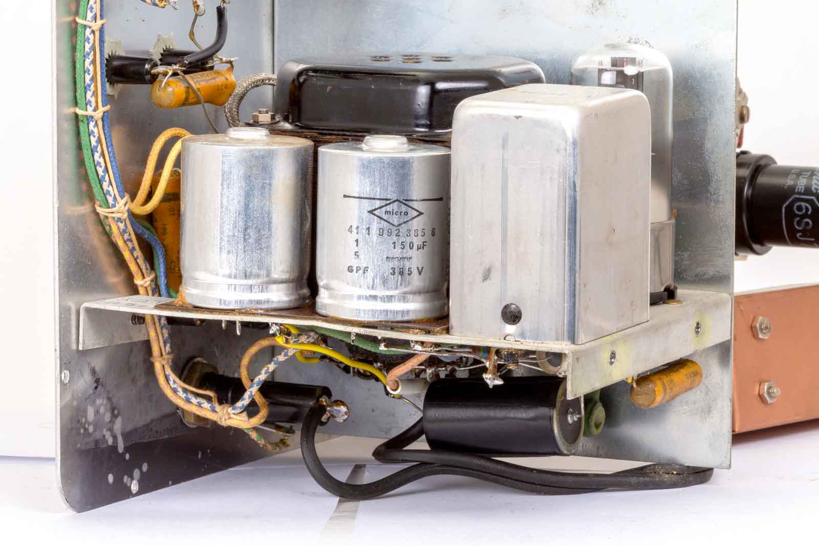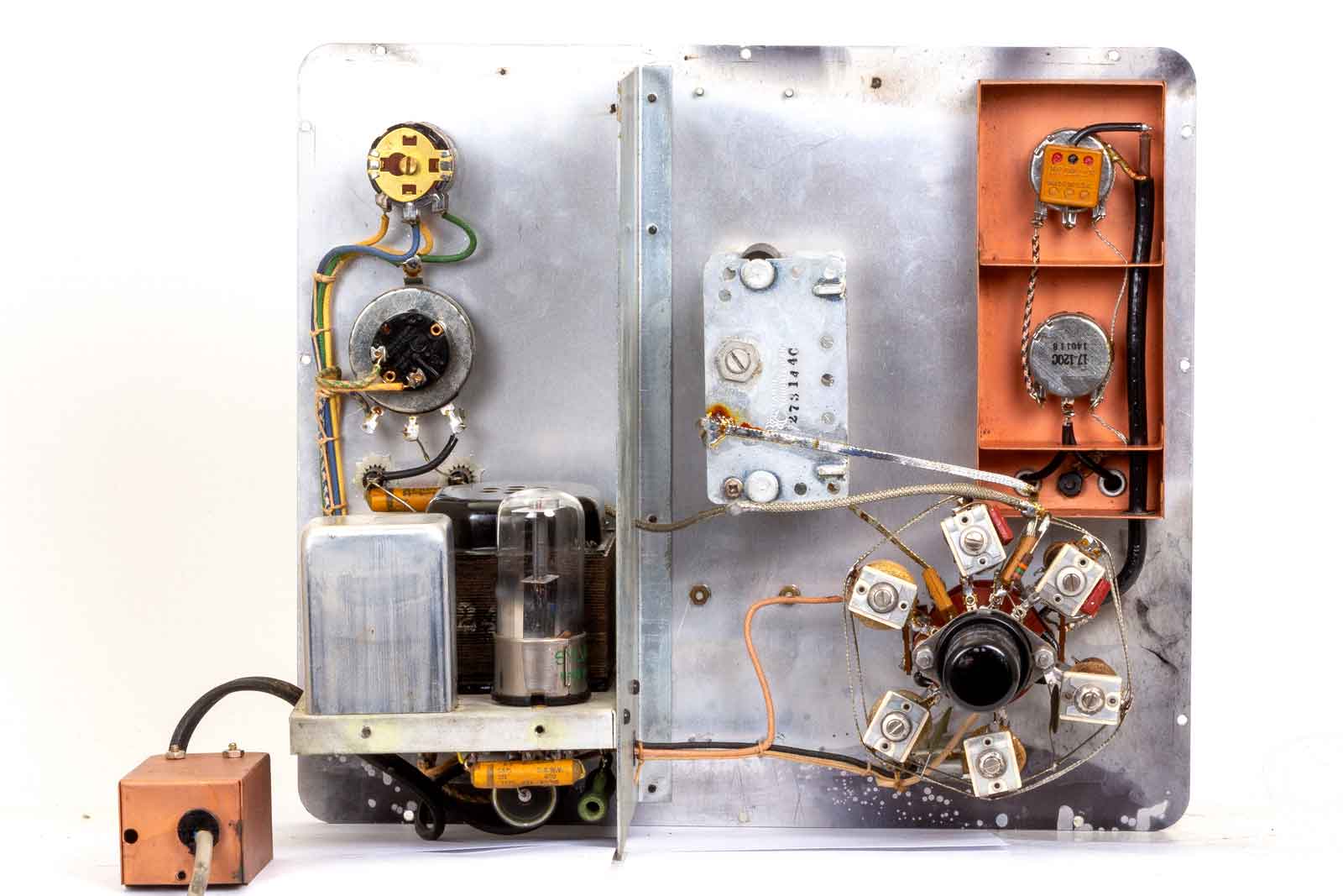 Dit is de uitvoering van 1957 met modernere buizen. De opstelling in het voedingsdeel is ook helemaal veranderd.