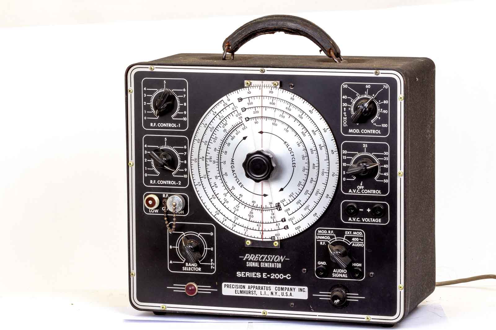 Een HF-meetzender van Amerikaanse afkomst. Het apparaat werd gefabriceerd door Precision Apparatus Co. (Pacotronics); Brooklyn - Elmhurst - Glendale, NY / Chicago, IL