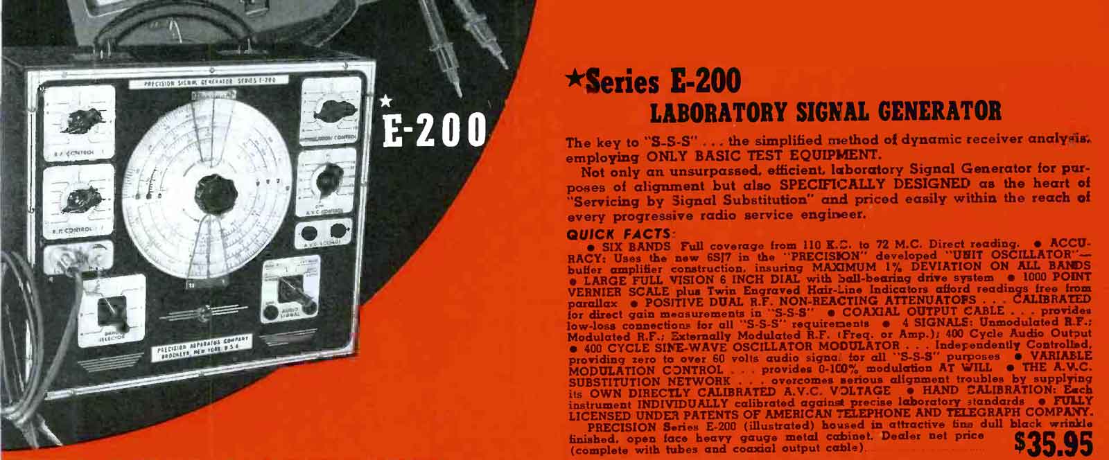 Reclame voor de Series E-200 signaalgenerator.