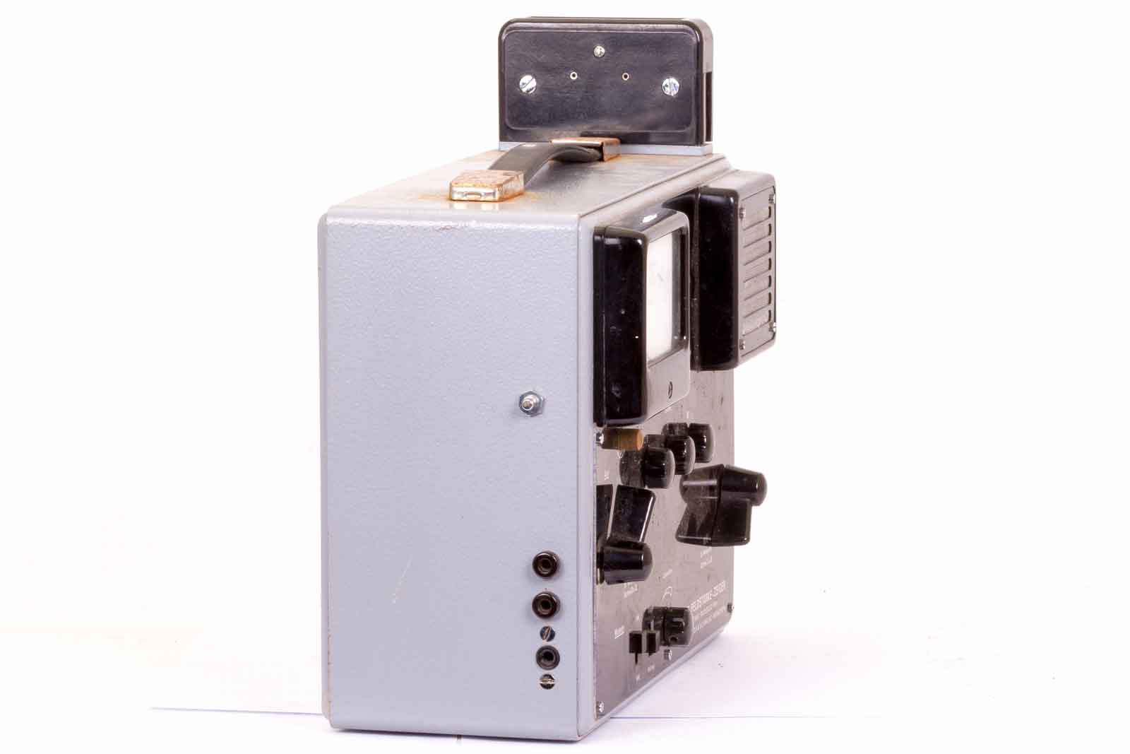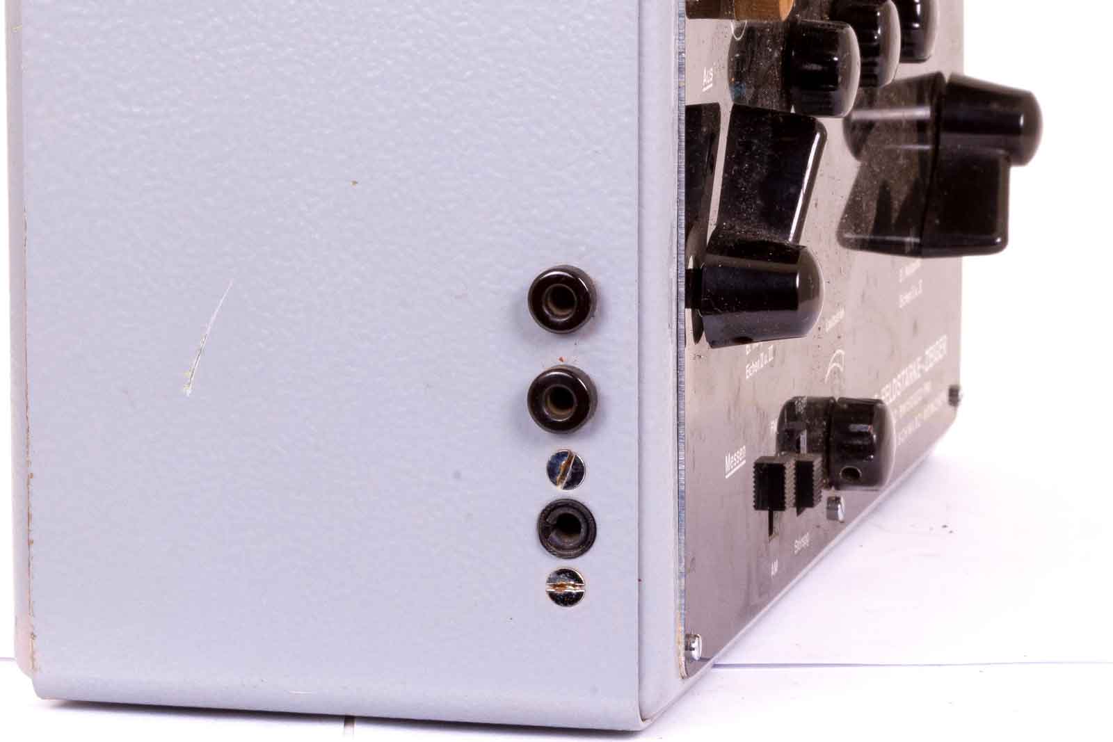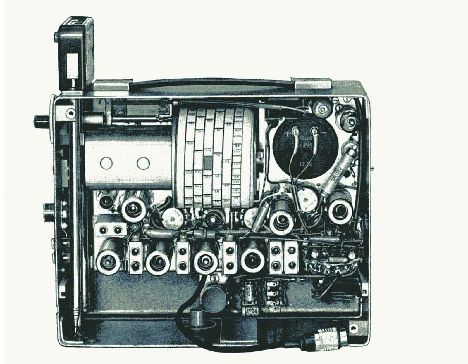 Het ingangsgedeelte met oscillato Rö2(DC70), mengtrap Rö2 (DF906) en ijkoscillator Rö9 (DF906). Daaronder het laadapparaat met daarnaast gedeeltelijk de transistoromvormer , de voeding van het instrument.