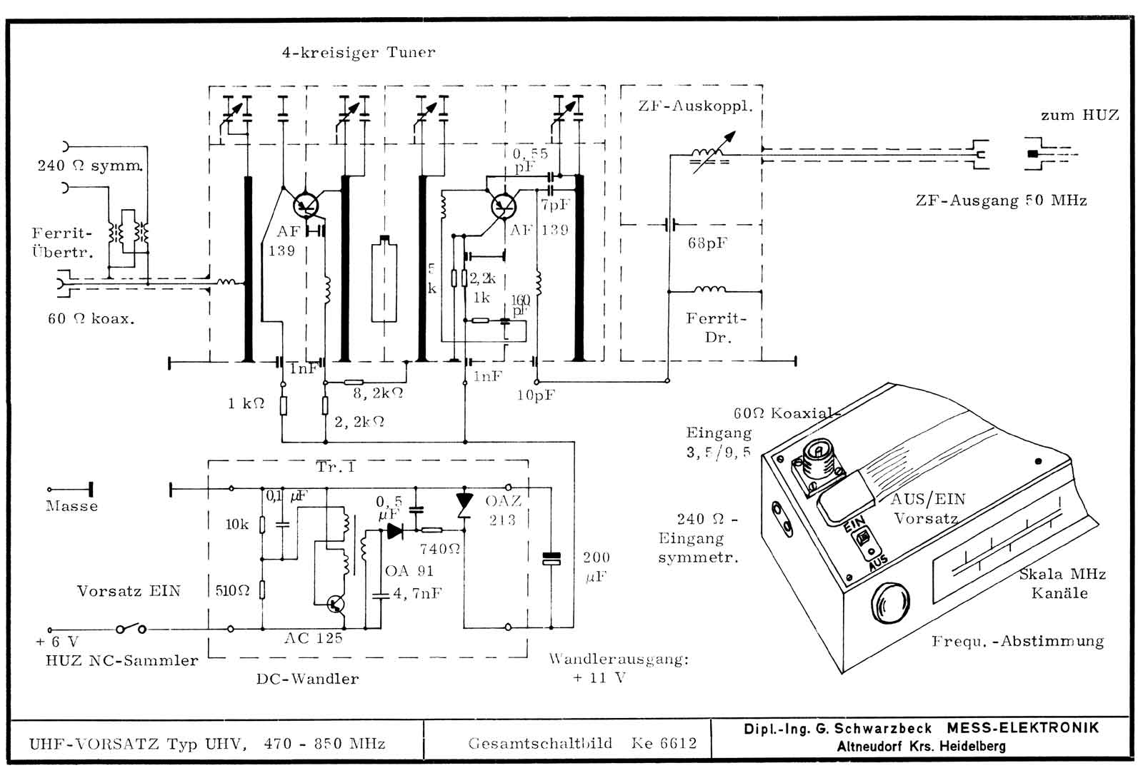 De UHF-converter , aangezien de schakeling op een 12 Volt-voeding was gebaseerd ( waarschijnlijk een bestaande unit) moest de 6 Volt voedingsspanning van de HUV omgezet worden naar 12 Volt.