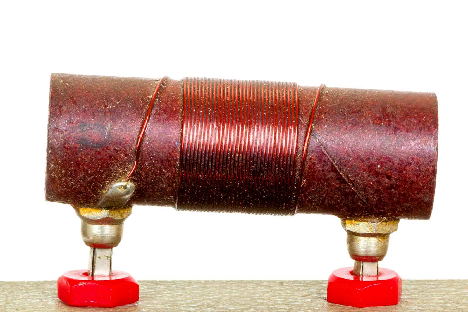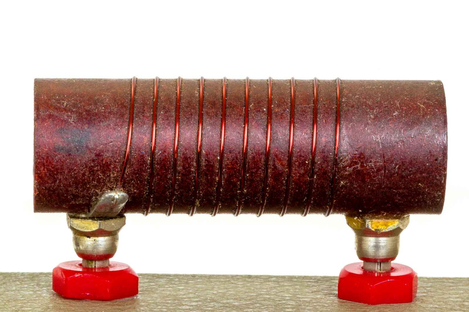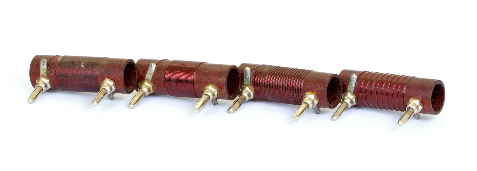 De vier standaard meegeleverde spoelen, voor de 160 en 6 meterband kunnen apart bij besteld worden. Dit zijn de spoelen vlnr. B, C, D en E.