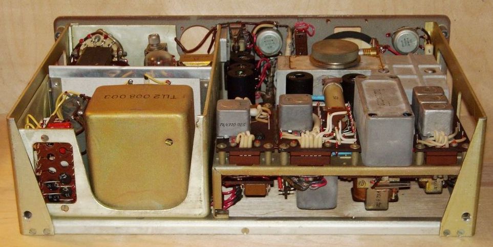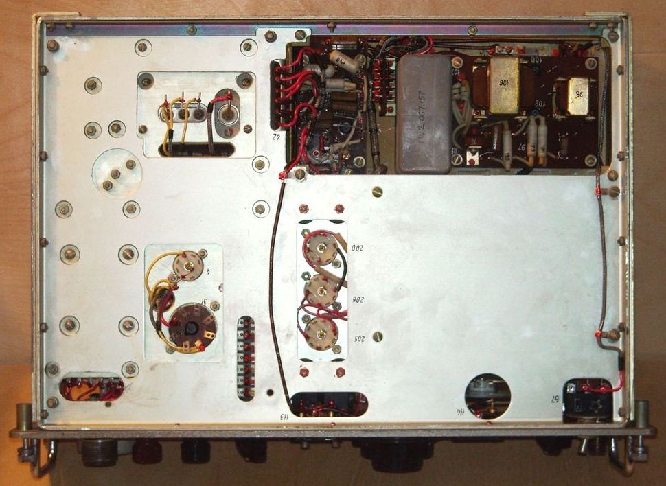 Onderaanzicht van de ontvanger(s). Links het VHF gedeelte en rechts de UHF-afdeling.