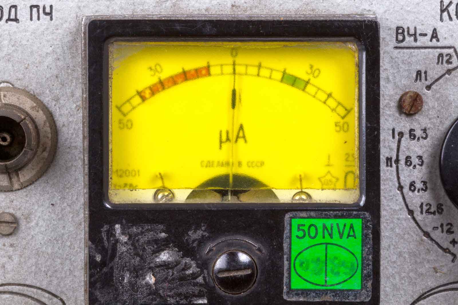 Op deze meter kunnen de waarden afgelezen worden die door de keuzeshakelaar (rechts) worden gekozen.