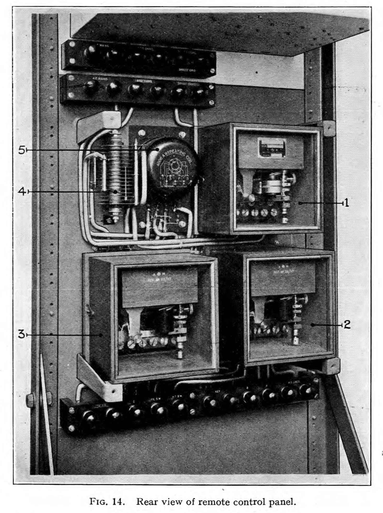 En dan het remote control-panel. Gelijk met drie units en bijbehorend spul. Eén van de units wordt voor het inschakelen van de LT ( Gloeispanning ed.) , een tweede exemplaar om de HT ( Hoogspanning) in te schakelen en een derde om te sleutelen. En dat kon allemaal op grote afstand bestuurd worden.