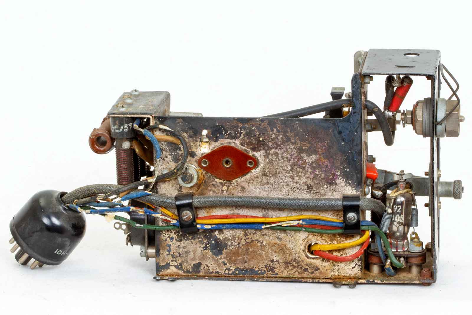 Dit deel is makkelijk uitwisselbaar en kan zo weer middels de stekker aangesloten worden. Waarschijnlijk units voor verschillende frequenties. Het ding ziet er uit als een super-regeneratieve ontvanger met CV6.