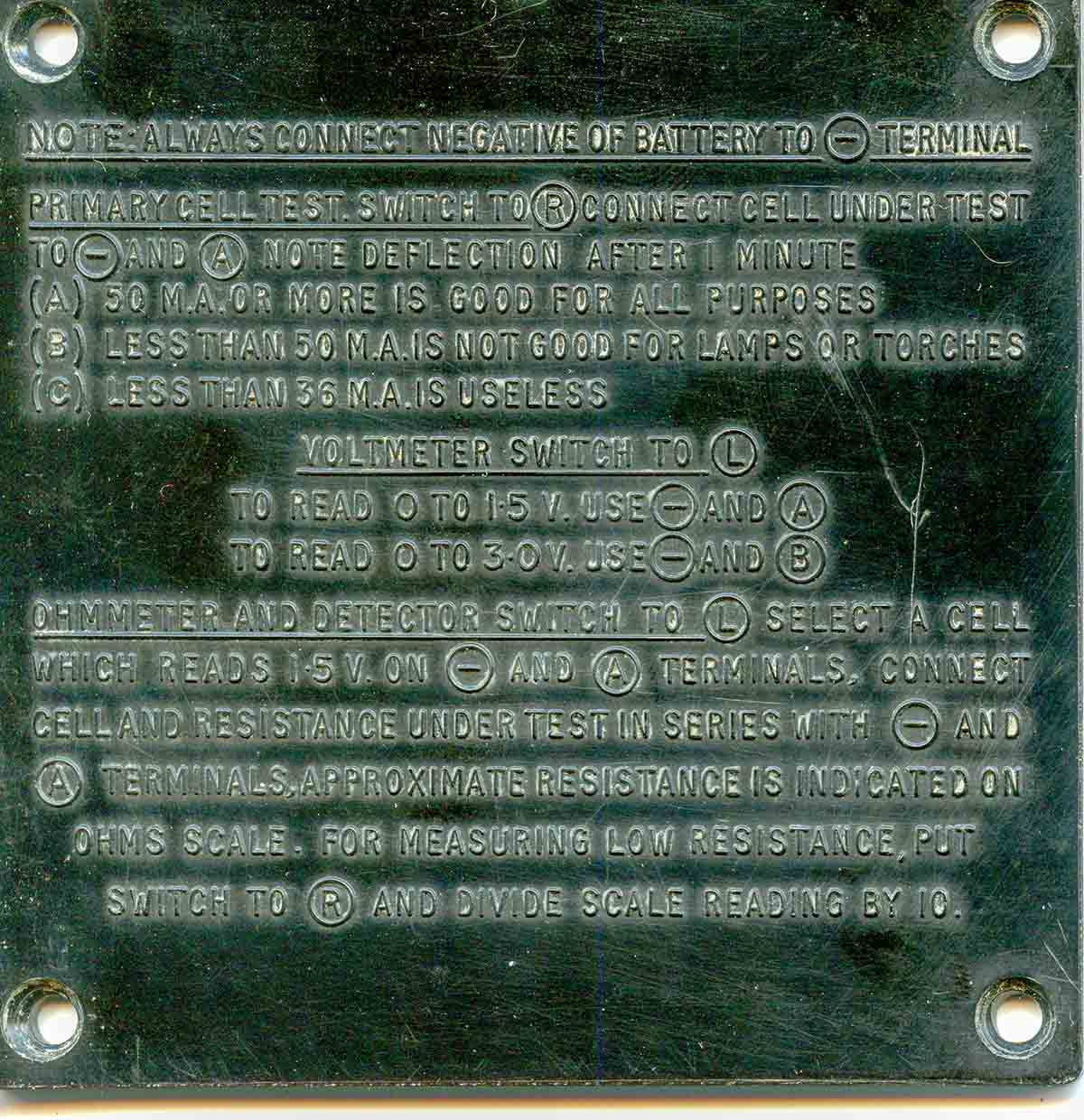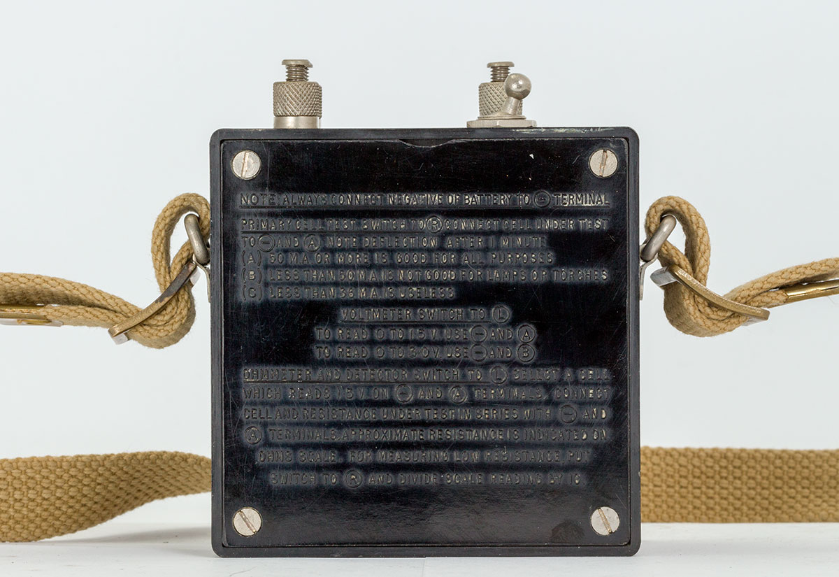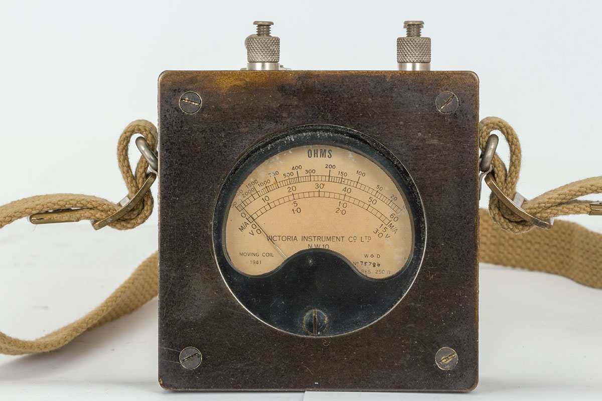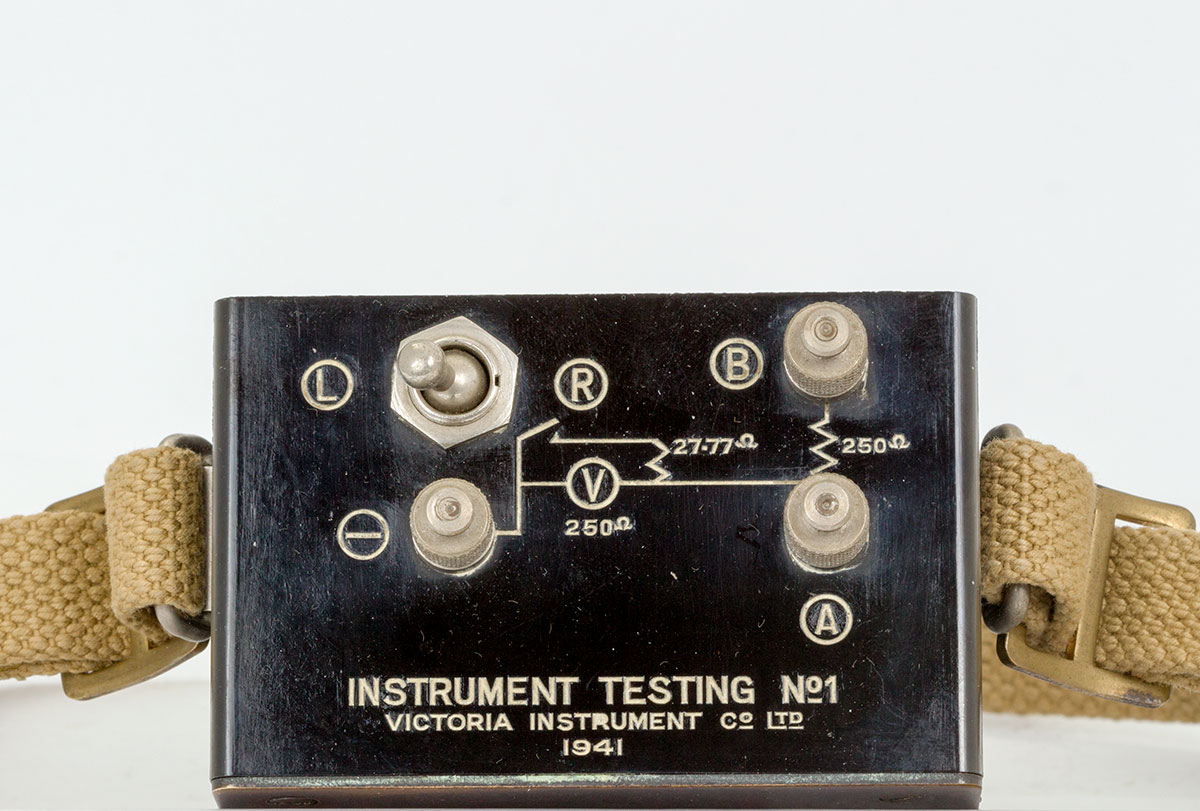 Het meetinstrument "Instrument Testing No.1" is een een meter die gebruikt werd door de RAF voor het testen van vliegtuig-accu's en andere zaken. De fabrikant is Victoria Instruments Co. Ltd. NW10.