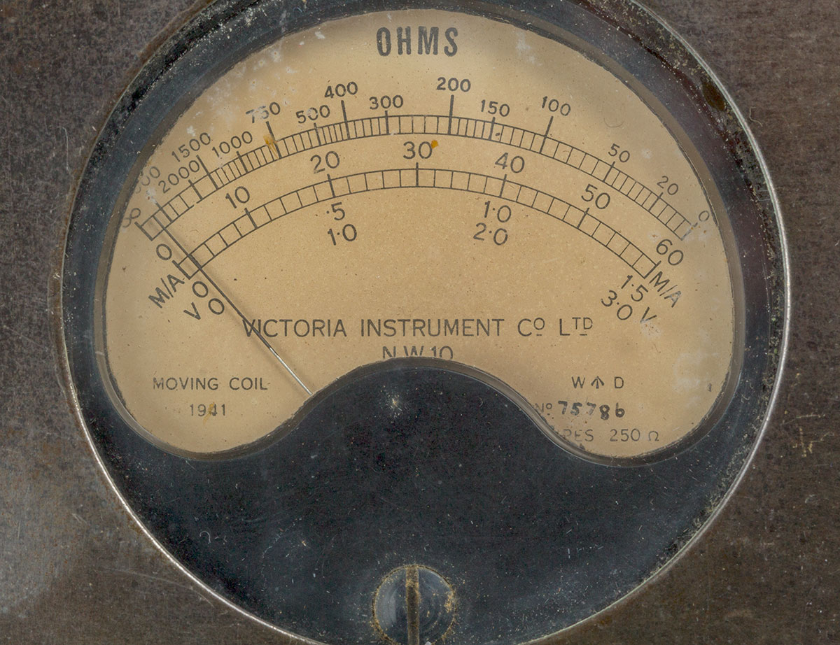 Het gebruikte meetinstrument is een draaispoelmeter van 1941 met een weerstand van 250 Ohm.