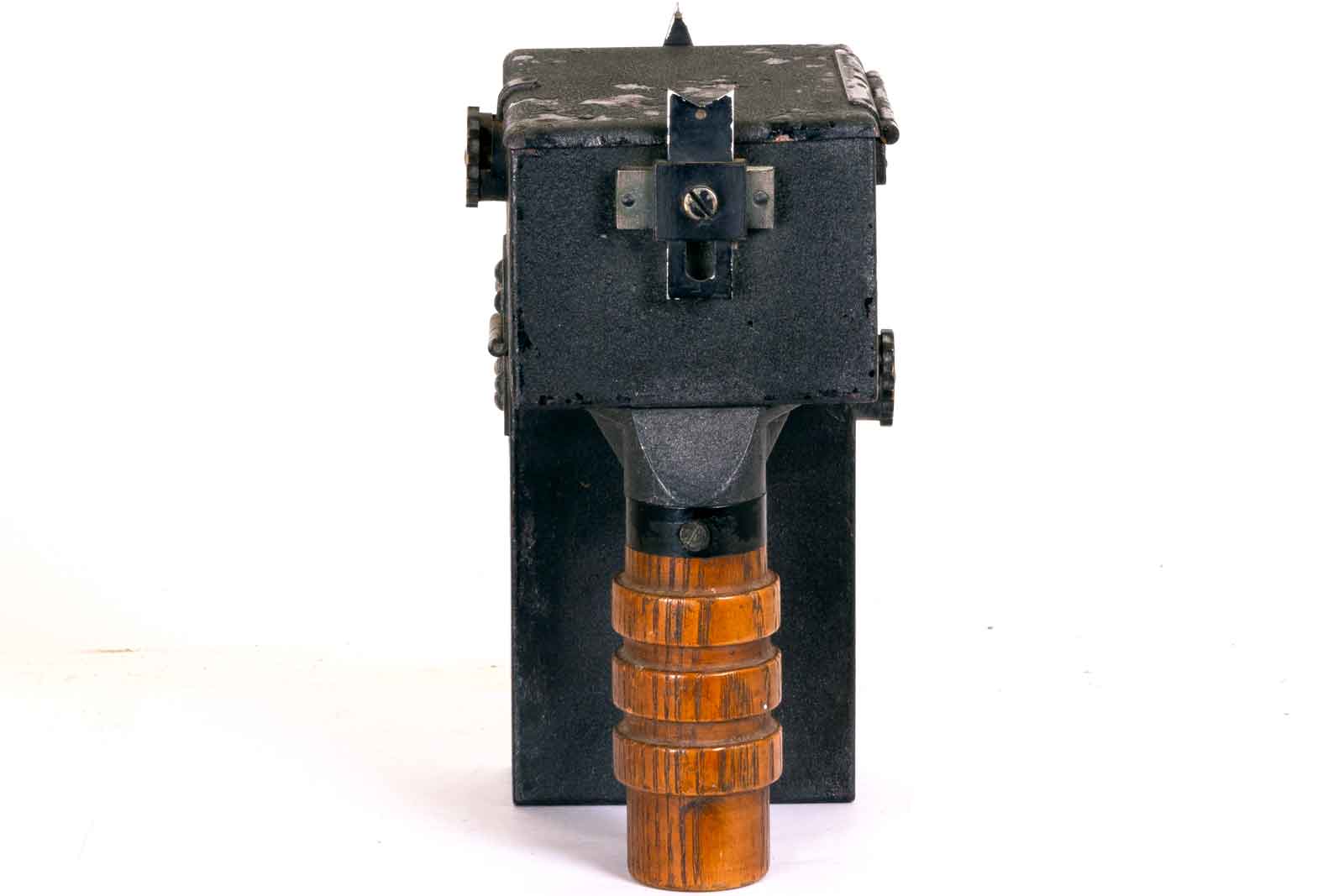 Dit is het apparaat, een seinlamp met een trekker van een geweer om te seinen.