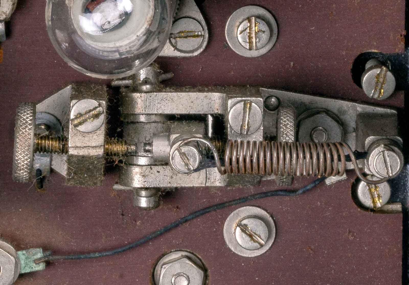 De instelbare contacten van de lichtschakelaar. Ook hier is net als bij een seinsleutel het één en ander in te stellen om het voor de seiner zo aangenaam mogelijk te maken.