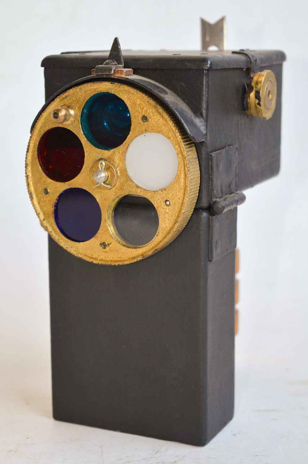 Oranje/Amber: Deze kleur diende vaak als herkenningssignaal (identification). Het hielp schepen om elkaar te identificeren als behorend tot hetzelfde konvooi zonder de felheid van wit licht te gebruiken. Een oranje filter was trouwens niet aanwezig op deze lamp.