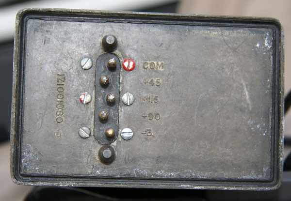 De antenneaansluiting met type-plaatje. Dateert uit 1959. Een deel van de
