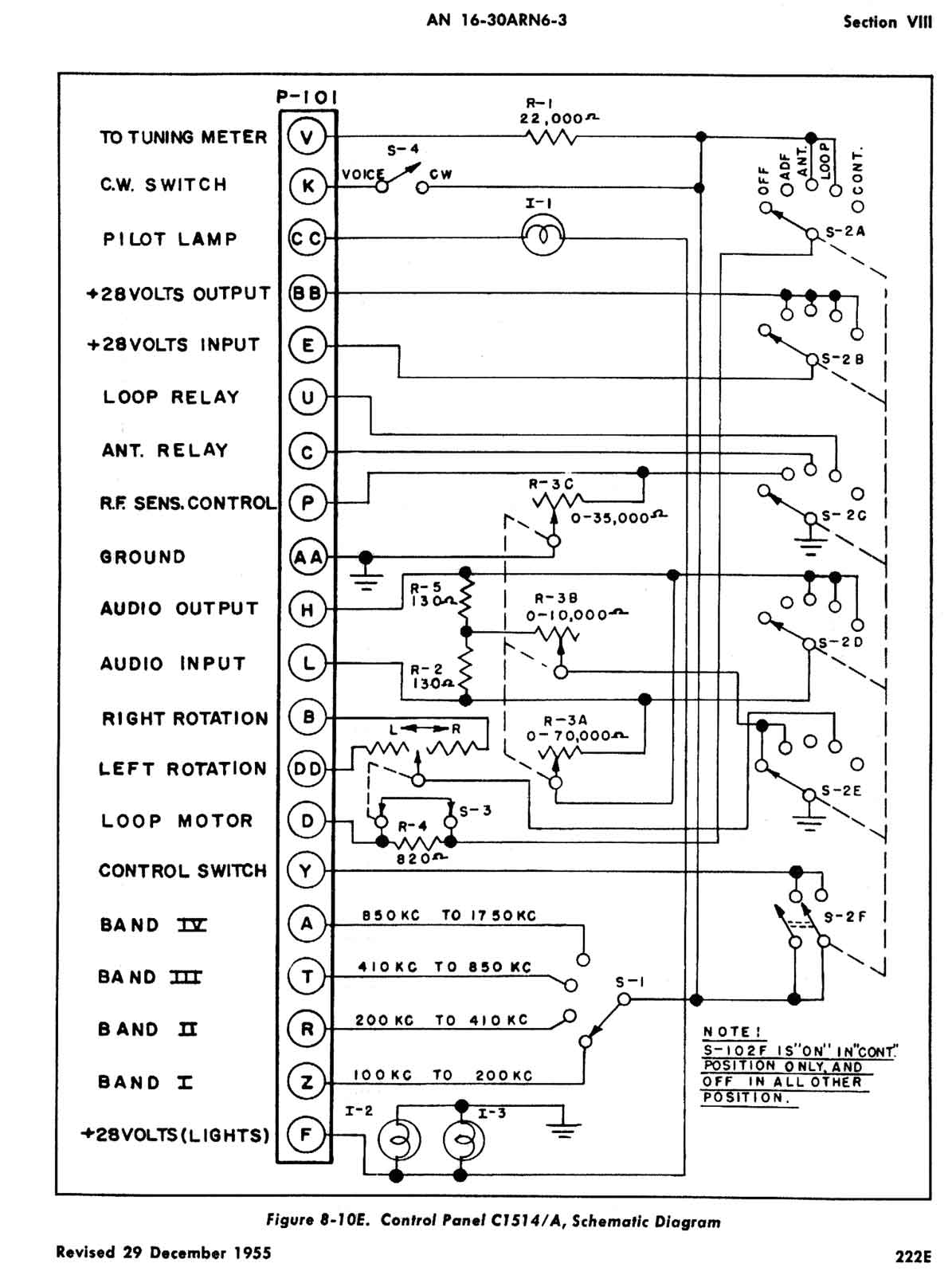 Dit is het schema van de C-149A/ ARN-6 met de aansluitingnummers van de mounting van de ontvanger.
