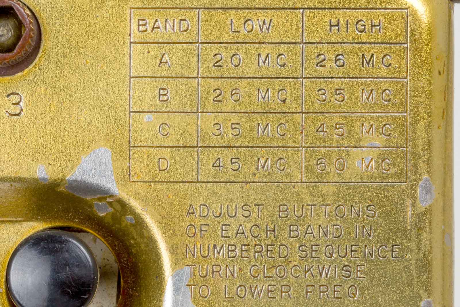 Boven-aanzicht van de ontvanger. Links de HF-kringen, rechts naast de schakelaar, de oscillator-kringen en daar naast mixer-ingangskringen.