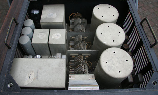 Het binnenwerk met de machtige afstemcondensator en de gigantische spoelbussen.