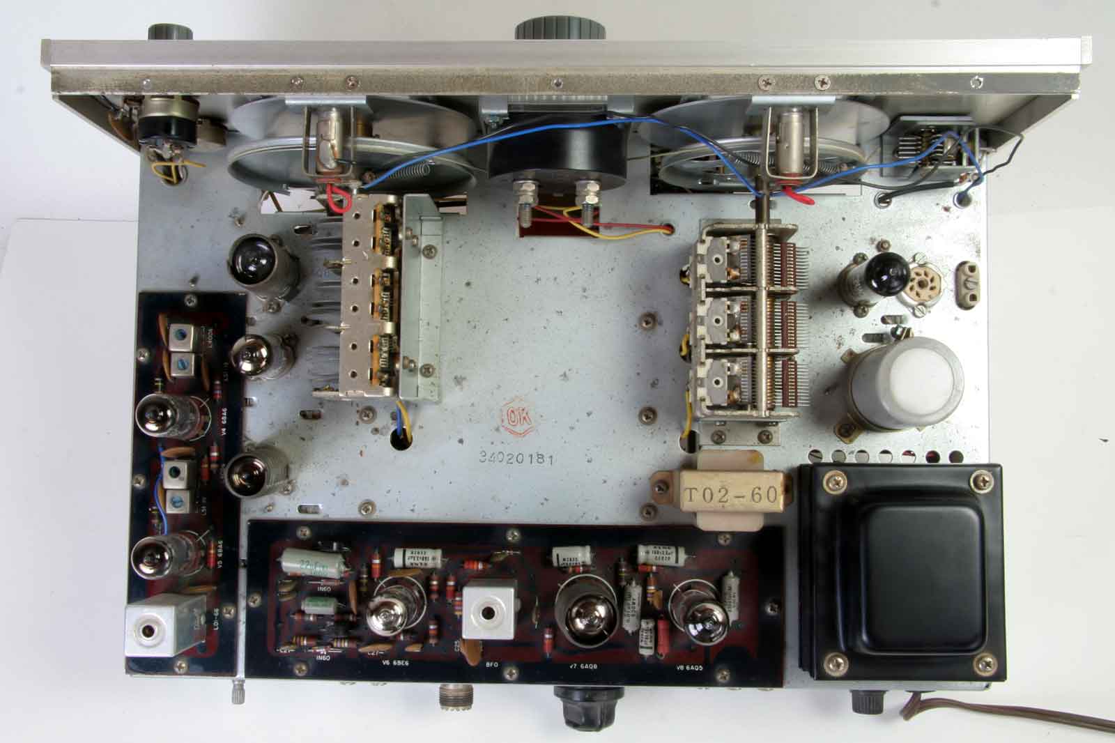 De MF-trap met twee mechanische filters en één trafo. De originele Hitachi-buizen zijn nog in gebruik en doen het nog prima.