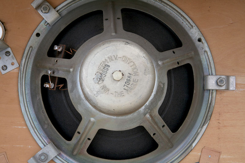 Wanneer het toestel uitgekast wordt houd je dit over. Een grote luidspreker op een groot houten klankbord. En dat is ook te horen.