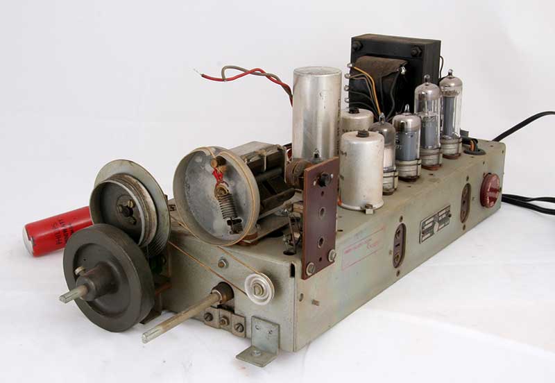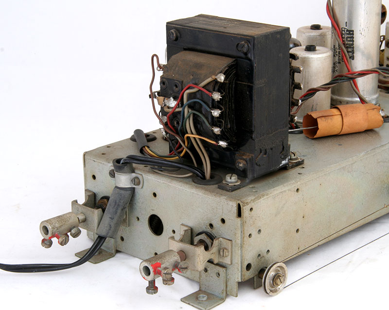 Op deze afbeelding het spoelblok en HF deel. Ook is hier de uitgangstransformator te herkennen.