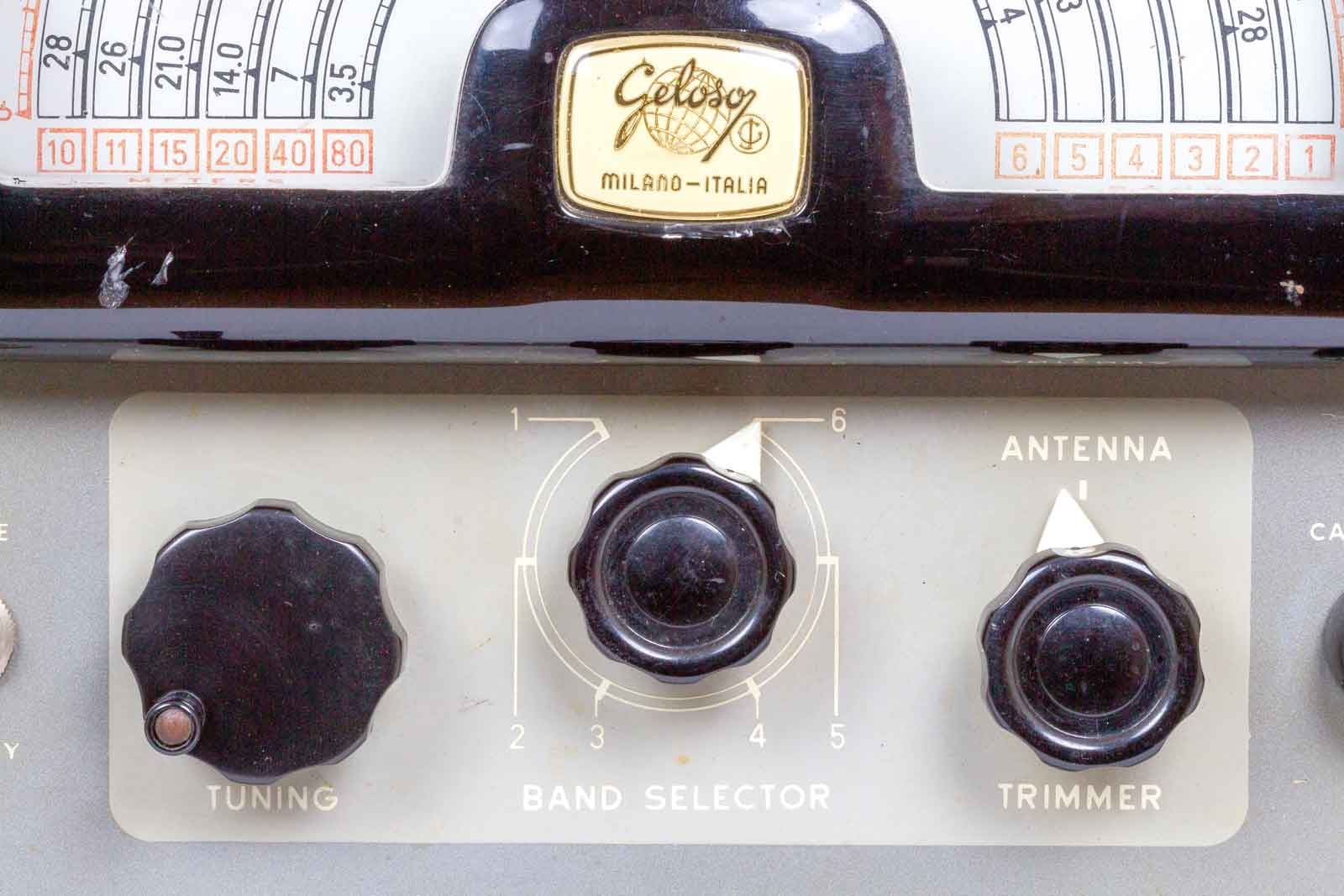 Een blik op de voorzijde. De frontpanelen van Geloso waren voor zenders en ontvangers ongeveer gelijk, de knoppen hadden wat andere functies.