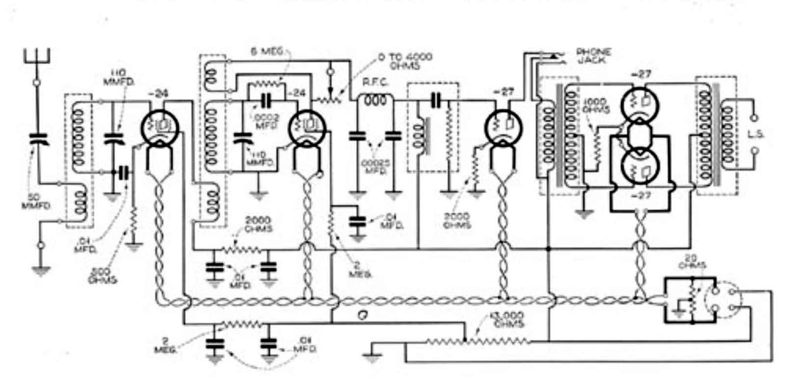 Daar boven de verwisselbare spoel en de pentode 224 of C-324A.
