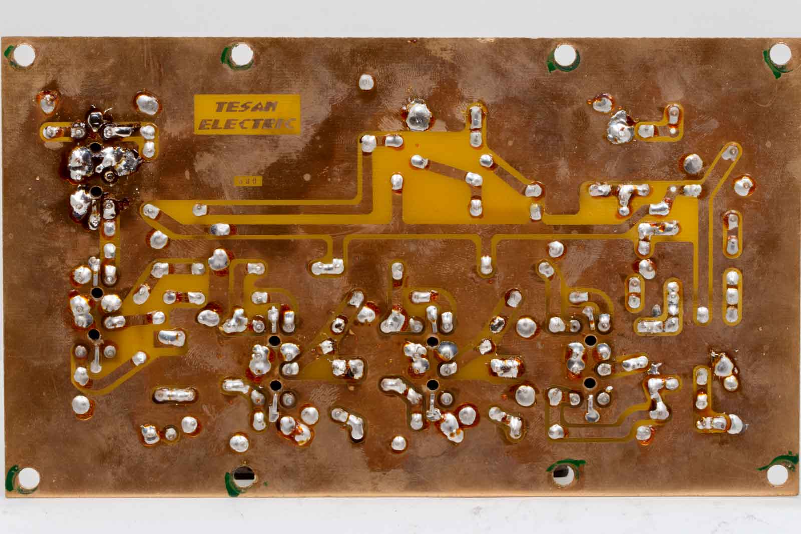 De printsporen en de donkere gaatjes van de trafo-kernen..